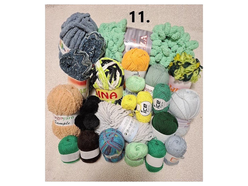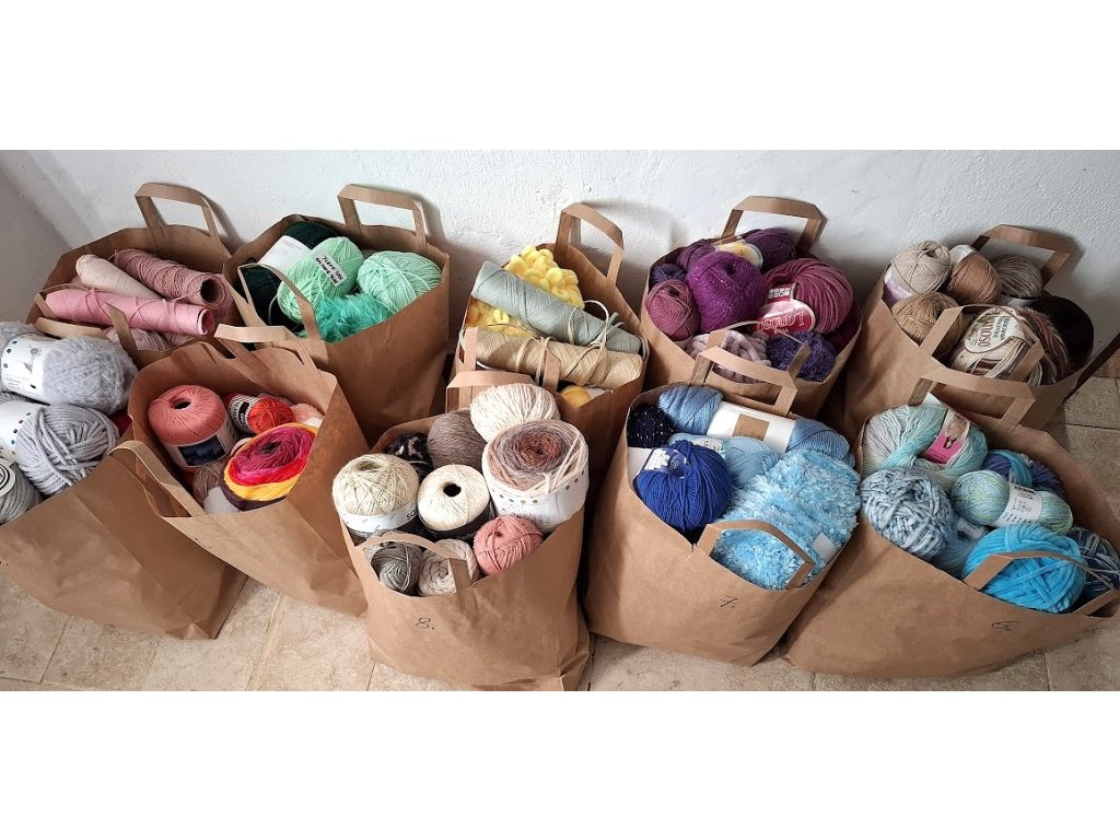 Více než 2 kg různých přízí na pletení i háčkování. Každý balíček je barevně sladěný. Využití je široké, ať už na barevné svetry, šály, čepice, ponožky a pod.