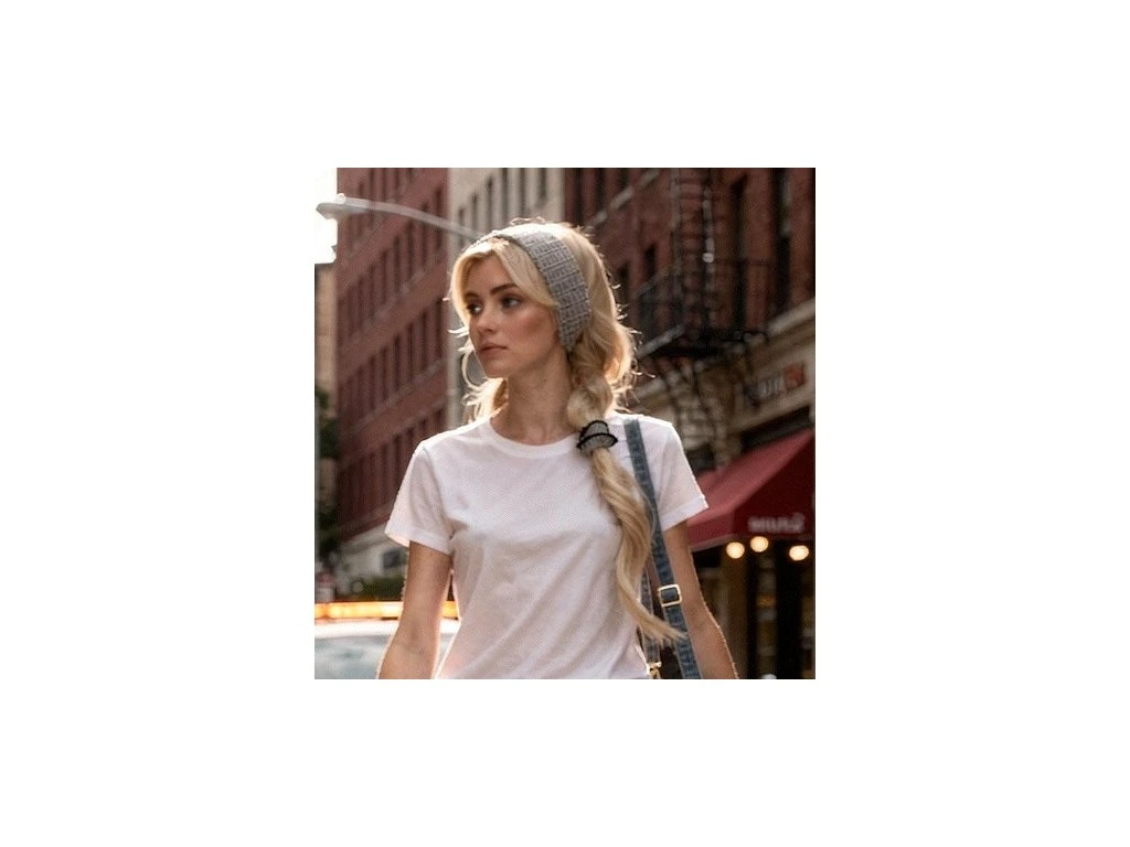 Módní háčkovaná čelenka na zavazování a ozdobná gumička ze stejného materiálu, která je skvělým doplňkem.