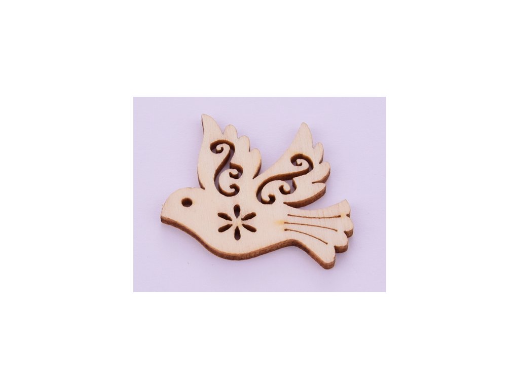 Wooden decoration in the shape of a dove. The decoration can be sewn, glued or attached with a hot air gun.Additional parameters