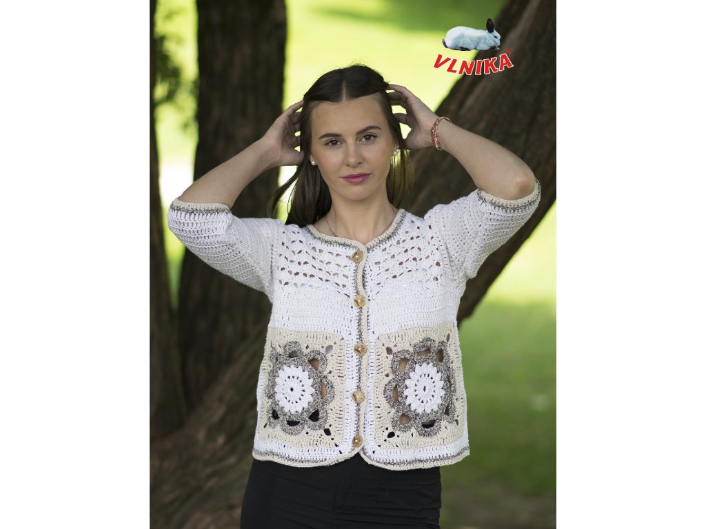 Sweater with three-quarter sleeves made of natural material in a combination of linen and cotton. Very comfortable for spring and summer wear. In a natural beige-brown shade with decorated coconut buttons.