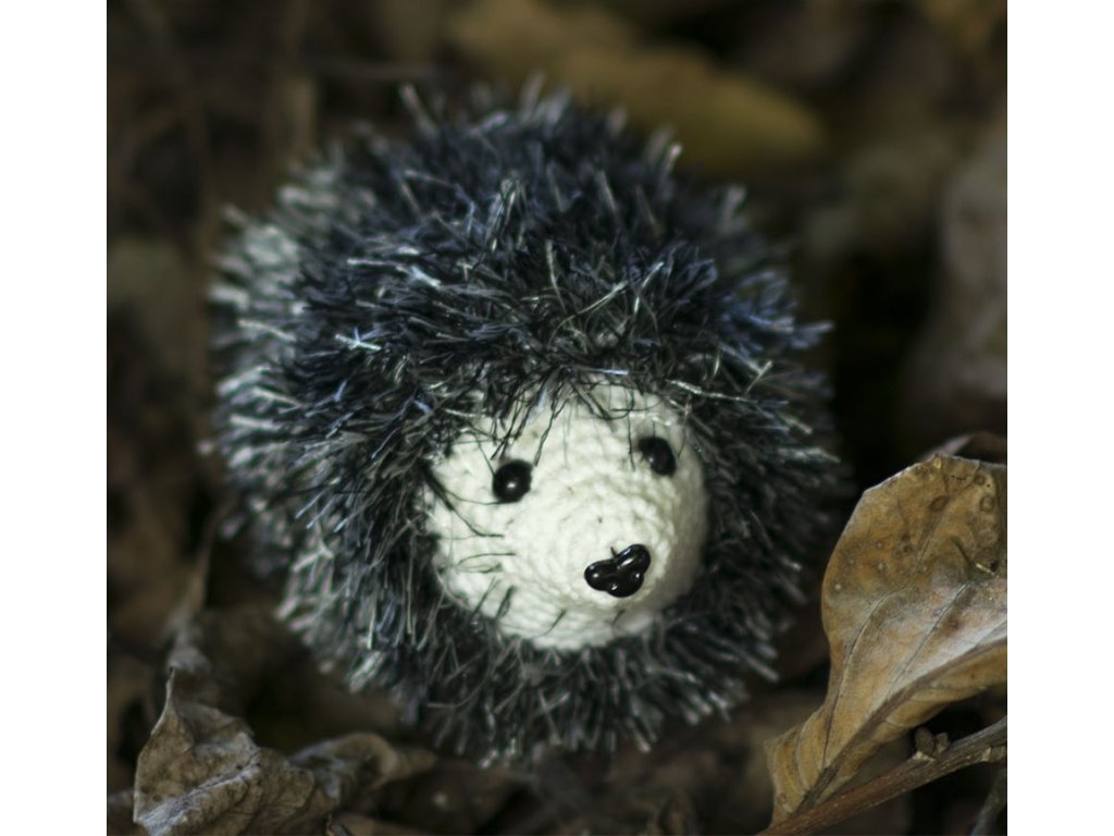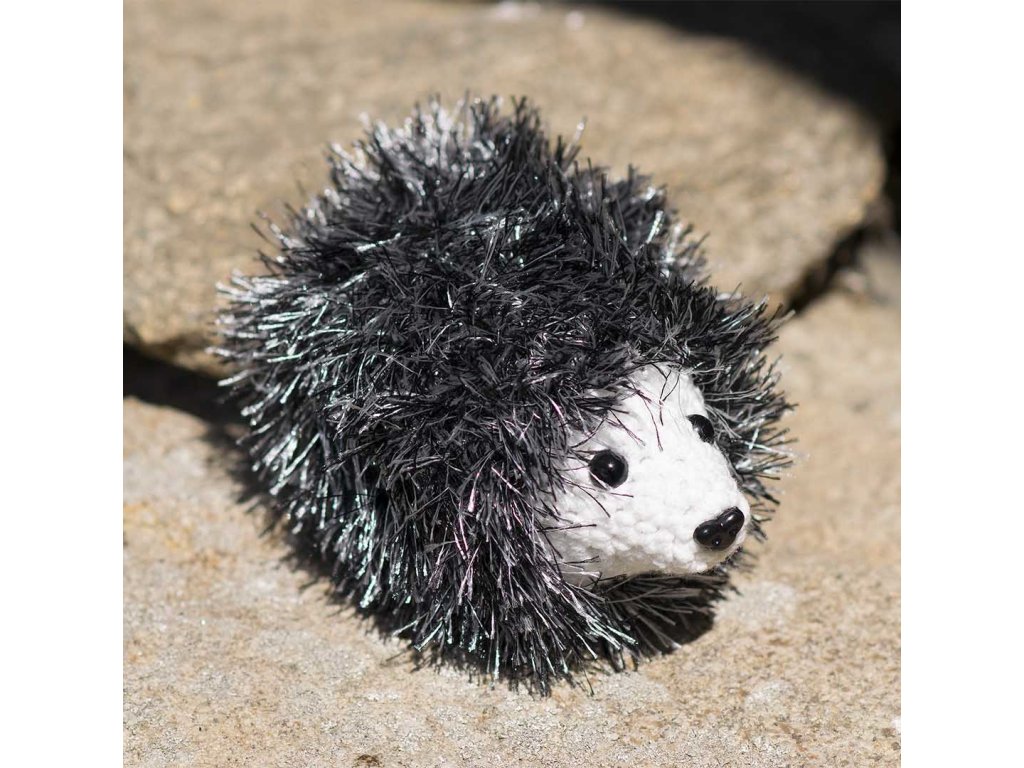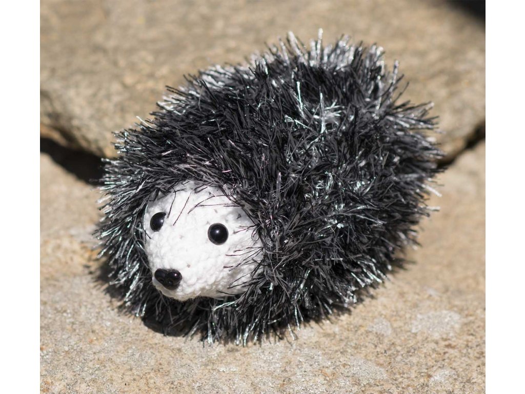 Háčkovaný černo-bílý ježek z příze Yumos.