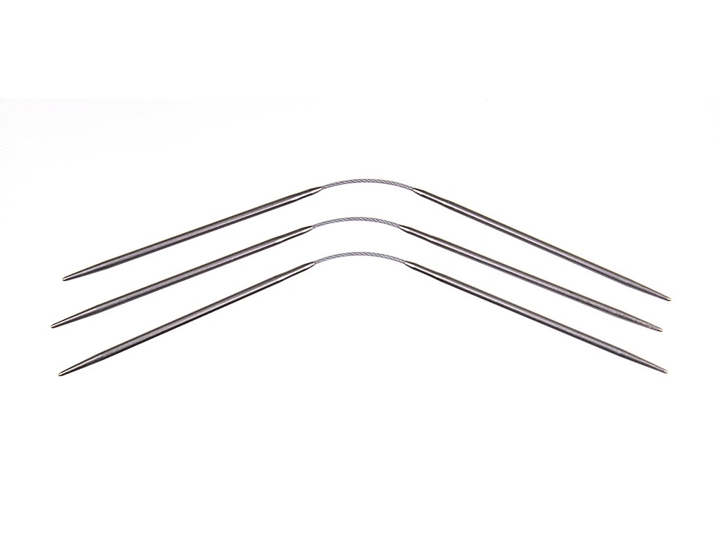 Extra short metal sock needles. They are suitable for knitting models with small diameters - sleeves, socks, gloves,... The yarns are firmly attached to the needles and are not replaceable. The package contains 3 pieces. Total length 23 cm. Aluminum needle 9 cm. Wire length 3 cm.Additional parameters