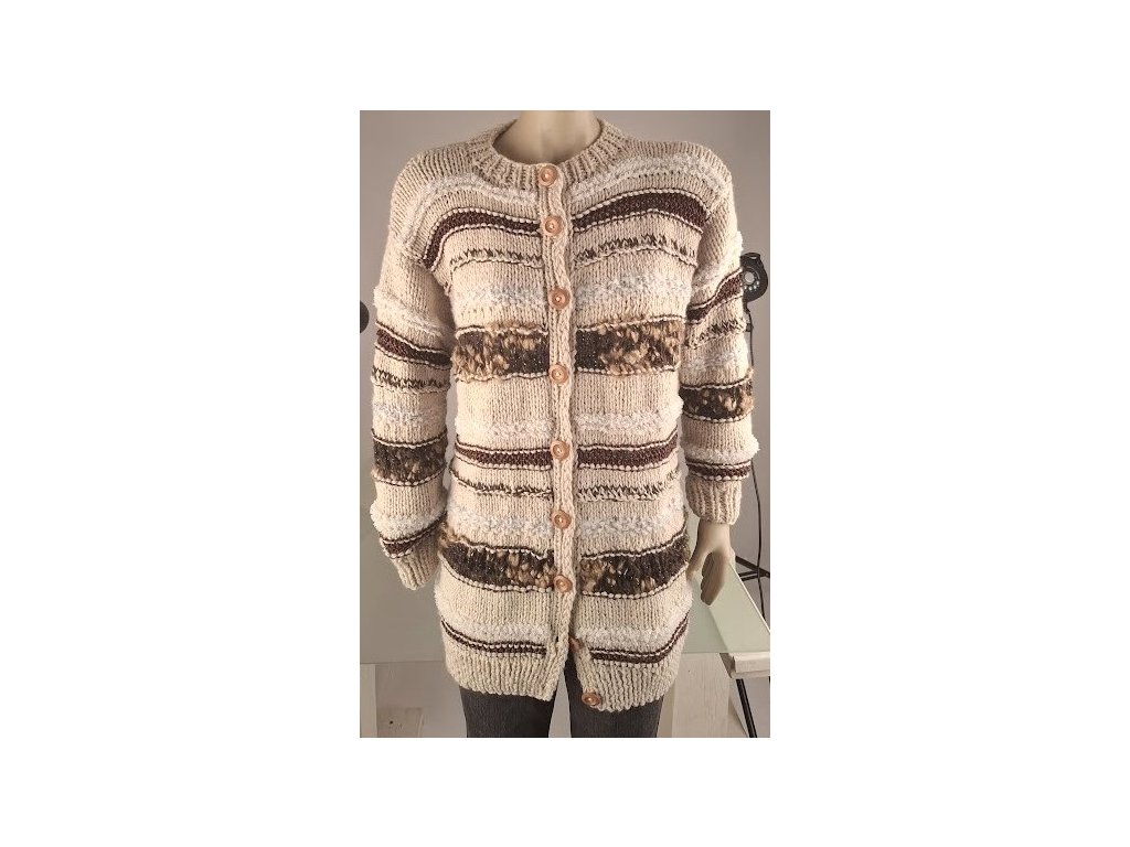 Long cardigan or jacket in natural beige-brown colors with an interesting combination of materials in stripes.