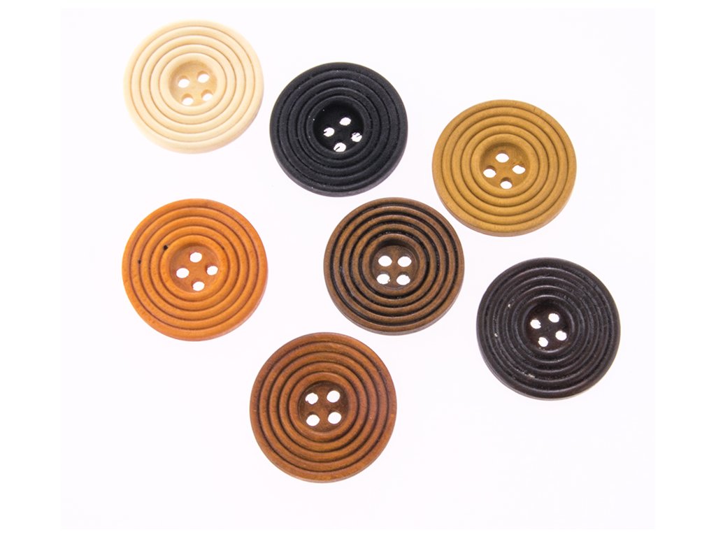 Wooden buttons with concentric grooves. The size and color shades are suitable for decorating clothes, coats and accessories.Additional parameters