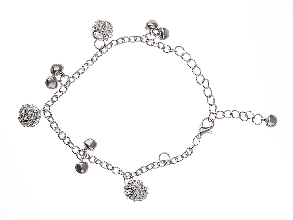 Silver bracelet with balls and bells, length is 30 cm, you can easily adjust it to the circumference of your hand.Additional parameters