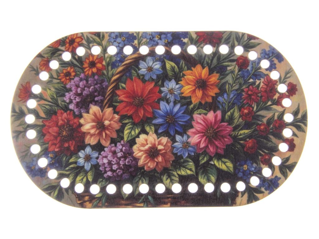 Oval plywood bottom - lid with flower print 20 x 12 cm