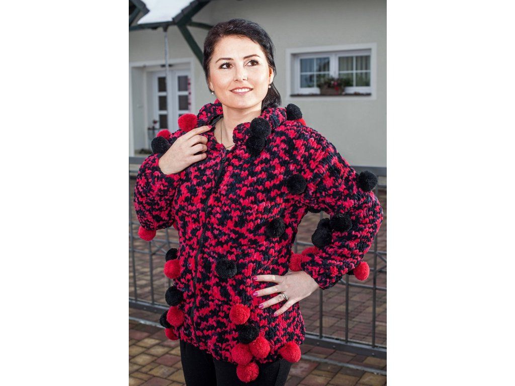 Unusual chenille yarn combined with a ribbon, which forms stitches in the knitted fabric. It can be used in a simple form on larger needles, or you can just pick the marked stitches. In this case, fancy loops will appear on the knitted fabric.