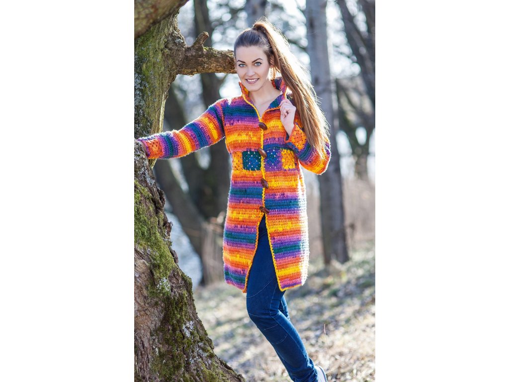 Highly desired rainbow-coloured yarns with lurex thread. Created products have an elegant effect.