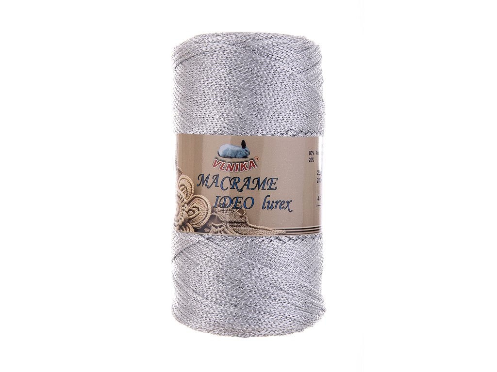 Material: 80% polypropylene, 20% lurex Solid chain yarn with lurex admixture, thanks to which it sparkles beautifully. Suitable for crocheting and knitting various home accessories = baskets, placemats... but also handbags, bags and the like.Additional parameters