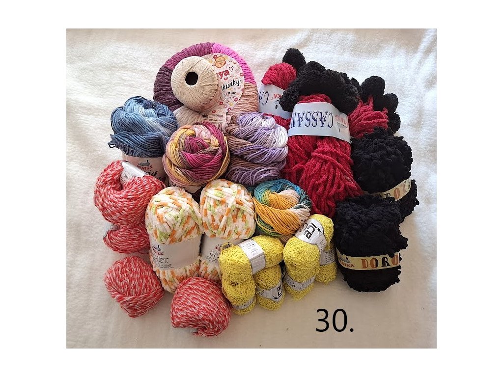 More than 2 kg of various yarns for knitting and crocheting. Each package is color-coordinated. The use is wide, whether for colorful sweaters, scarves, hats, socks, etc.
