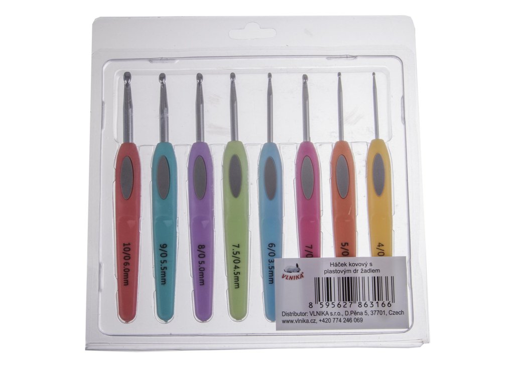 Kvalitně zpracovaný háček s plastovým držadlem. Délka 14 cm. Set 8 kusů.