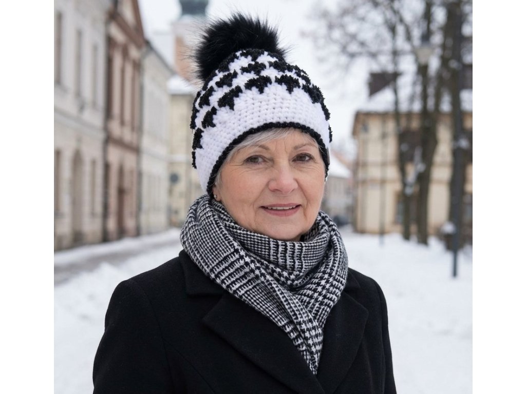 Háčkovaná čepice černo-bílá Dante