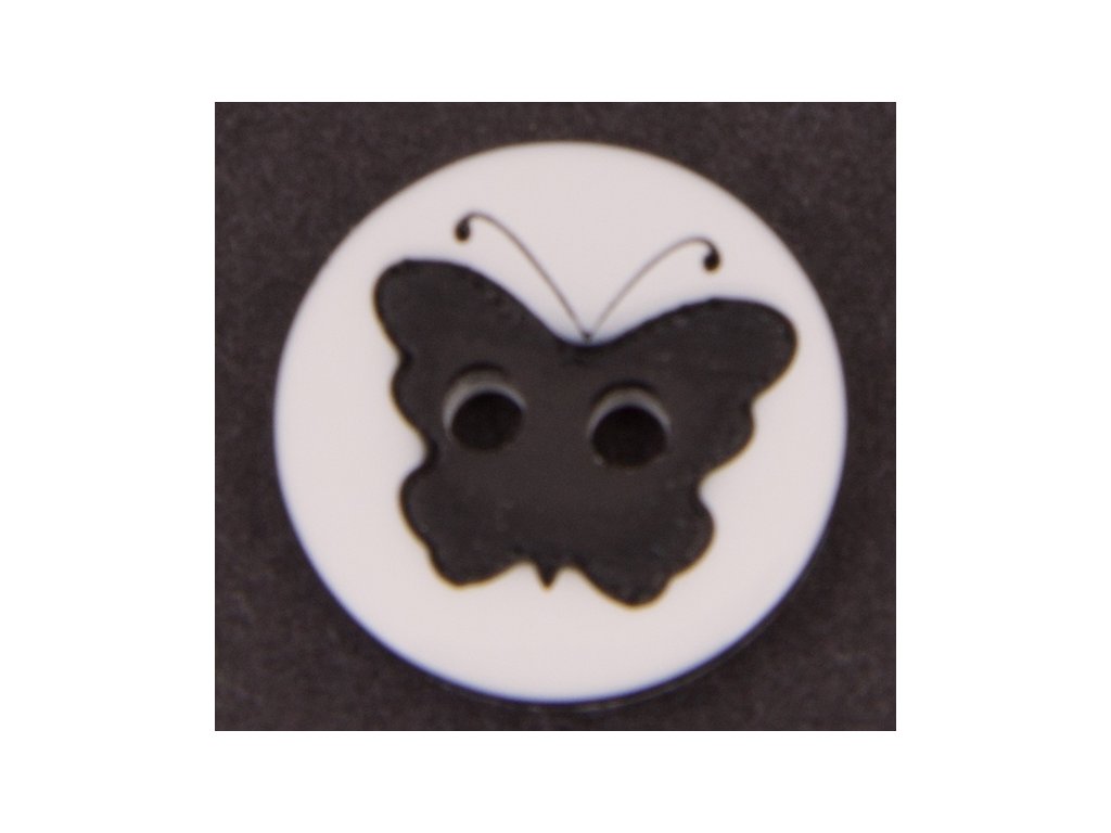 Plastový dvoudírkový knoflík s potiskem motýla.Doplňkové parametry