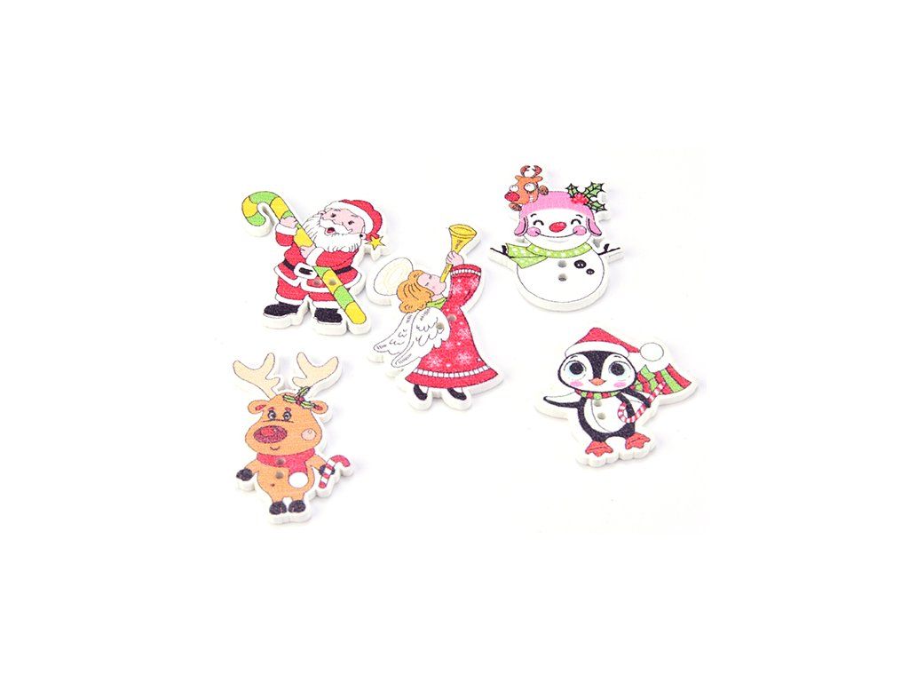 Prodej náhodný mix. Po 1 ks. Tento dekorační knoflík ve tvaru anděla, sobíka, vánočního tučňáka, je vhodný jako ozdoba na oblečení, háčkované a pletené věci - čepice,šály,ponožky, pondkolenky a jako dekorace na taštičky, kabelky.
