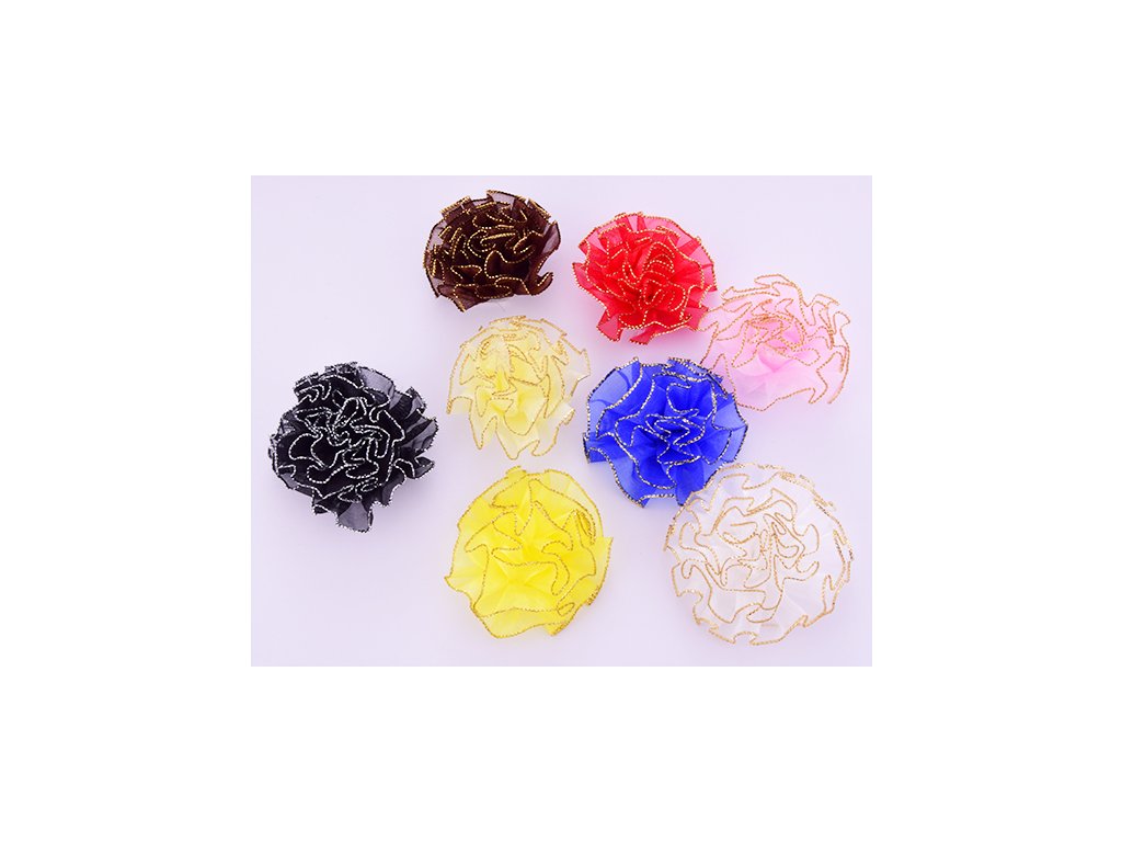 Květinová ozdoba na tašky, kabelky, pouzdra, peněženky,šály, halenky, tuniky, na zdobení klobouků, polštářů nebo dek. Květ lze našít nebo připevnit tavnou pistolí.Doplňkové parametry