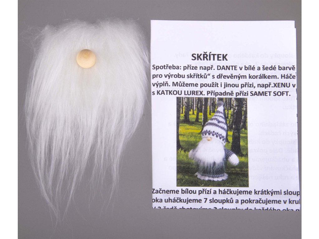 Podrobný popis v tištěné podobě k výrobě skřítka s bílými vousy a nosem. Balení obsahuje návod, vousy a nos.Doplňkové parametry
