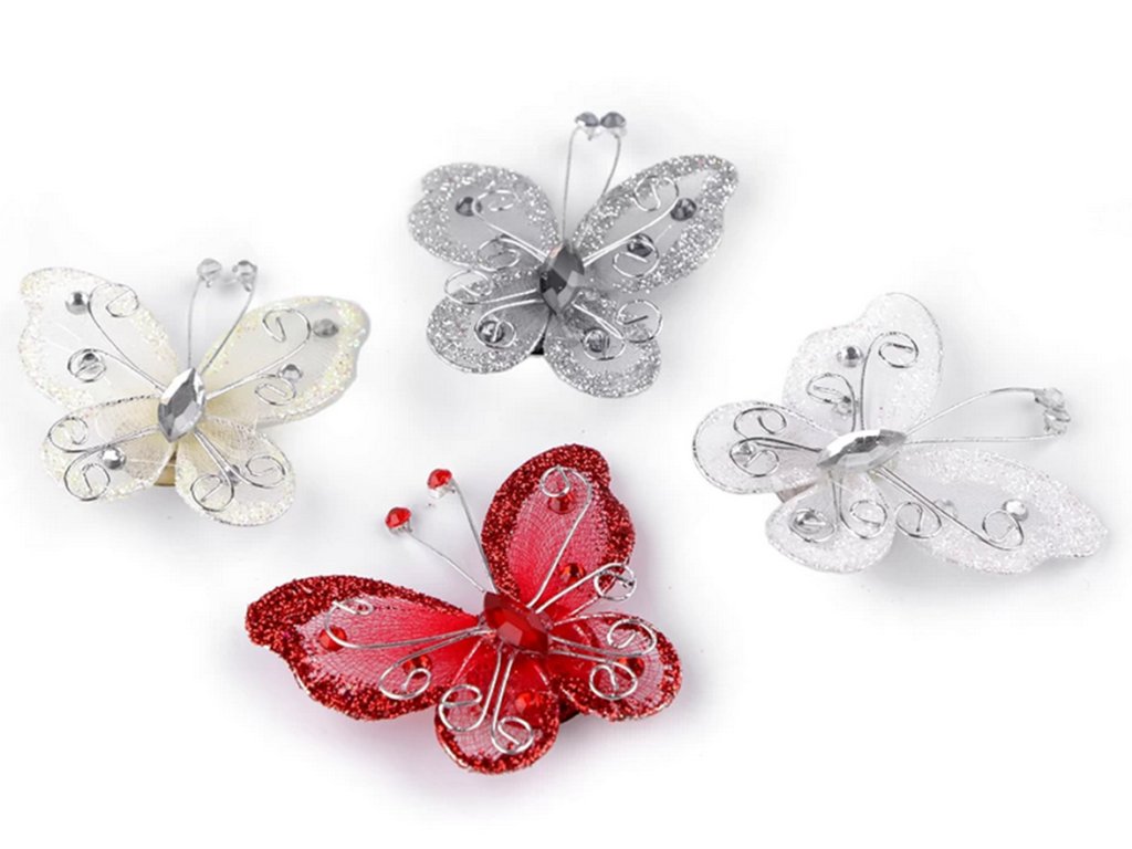 Ozdoba, dekoracja do przyszycia lub przymocowania przy pomocy pistoletu do klejenia. Dekoracja i ozdoba w kształcie motylka ozdobi Twoje ubrania, torebki, opaski...Parametry dodatkowe