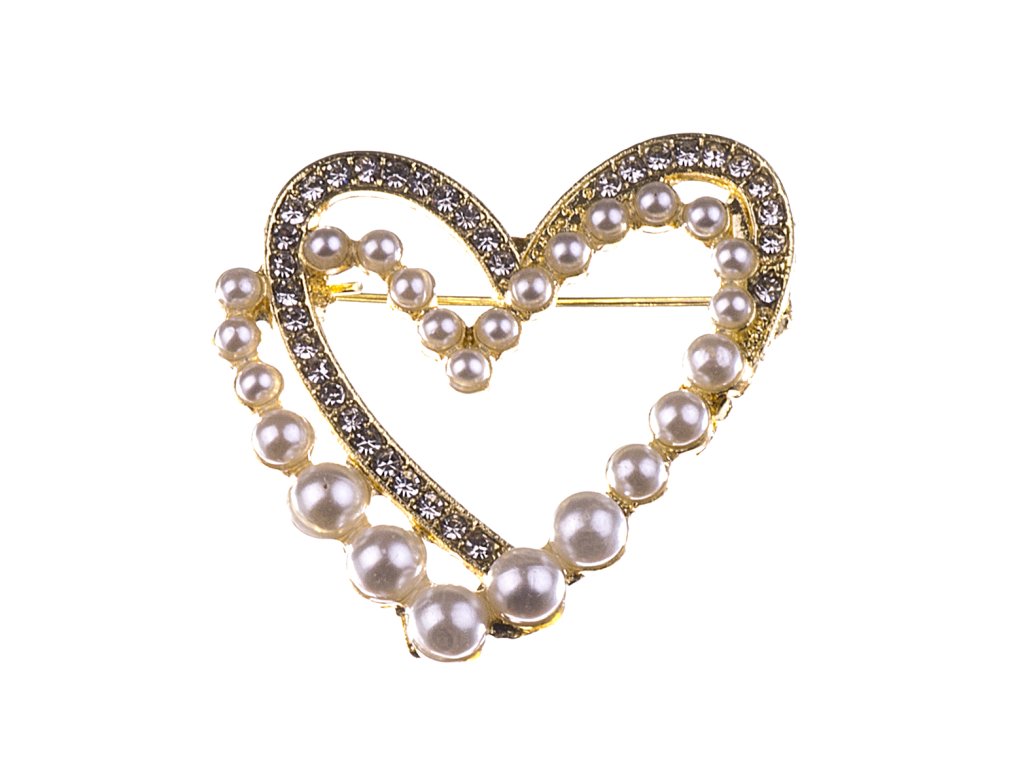 Broszka w kształcie serca z kryształkami i perłami. Broszka posiada z tyłu agrafkę. Wymiary: 35 x 35 mmParametry dodatkowe