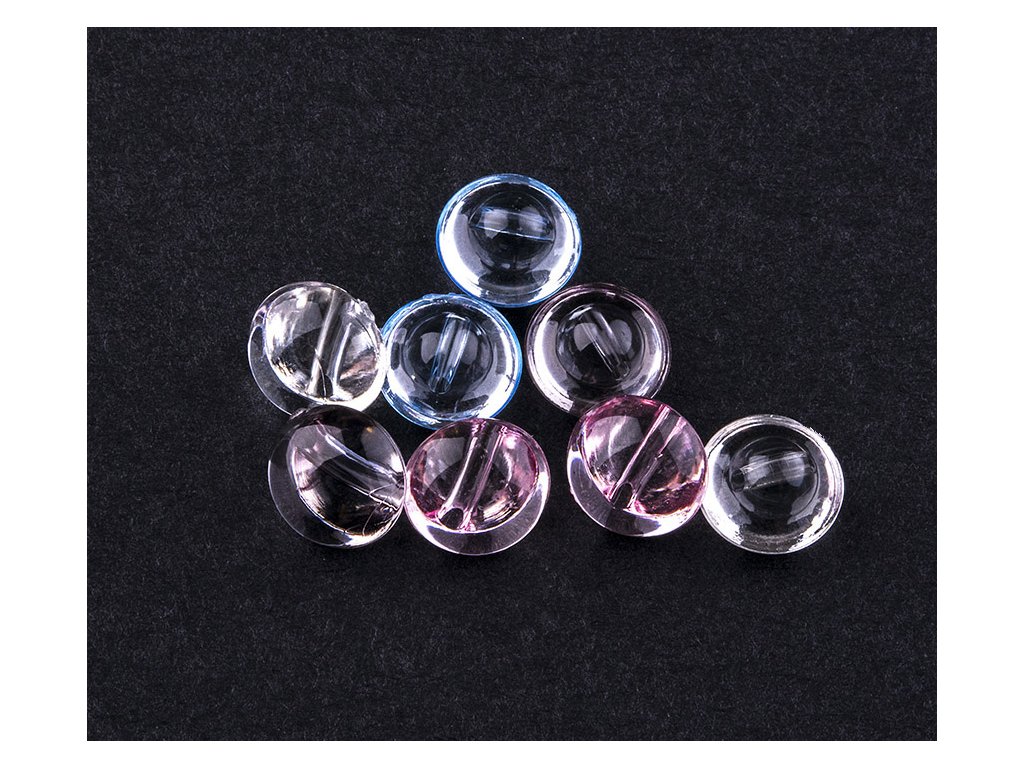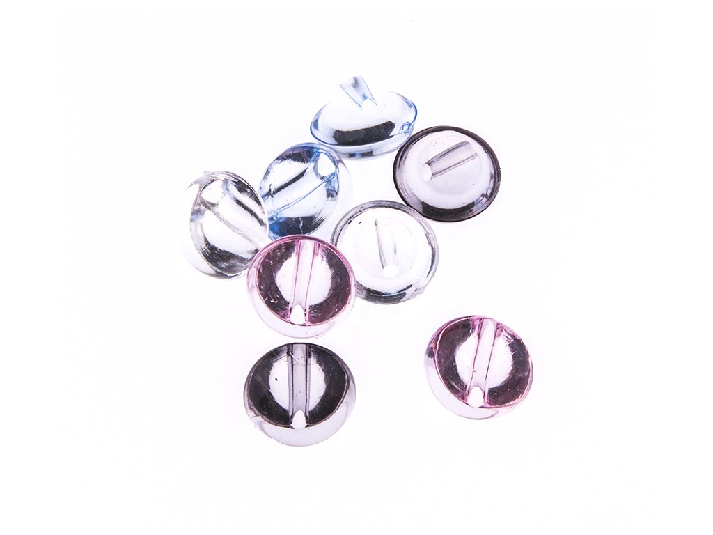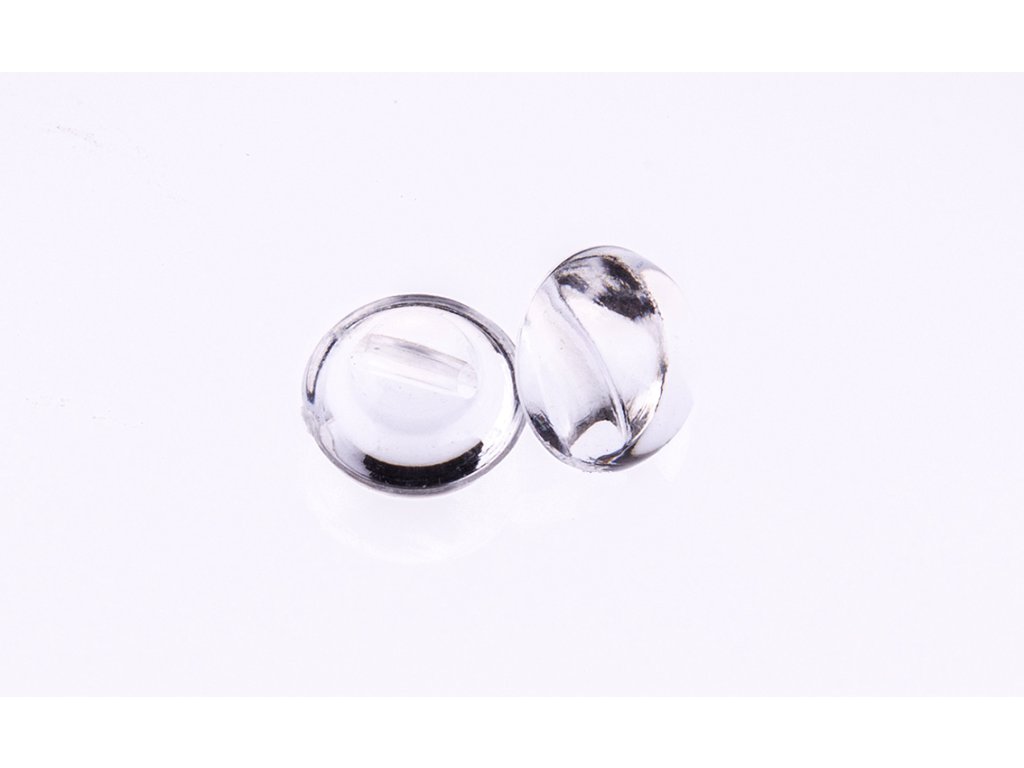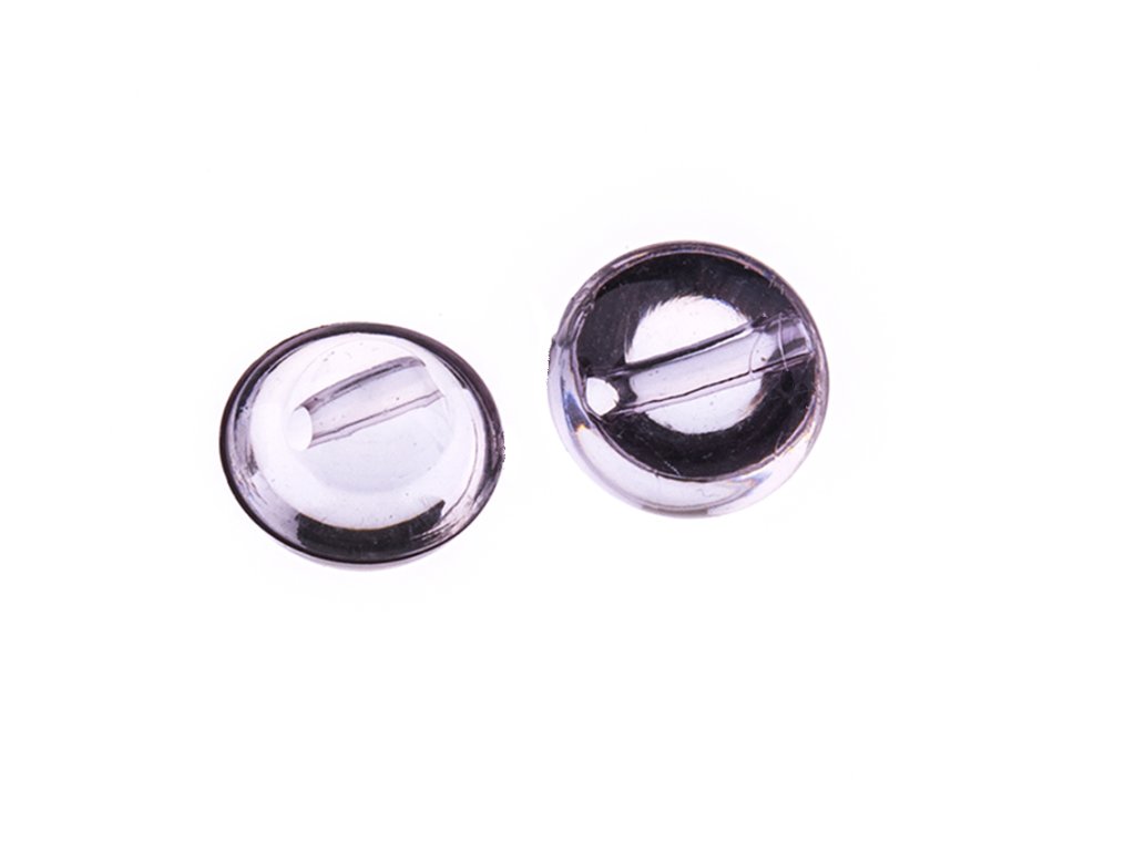 Plastikowy przezroczysty guzik o średnicy 10 mm, odpowiedni do bluzek, swetrów, sukienek lub do oczu postaci i lalek._x000D_ Cena za 1 sztukę.