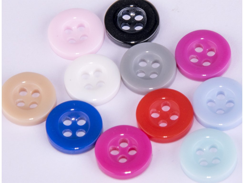 Plastikowy guzik do koszuli z czterema dziurkami.Parametry dodatkowe