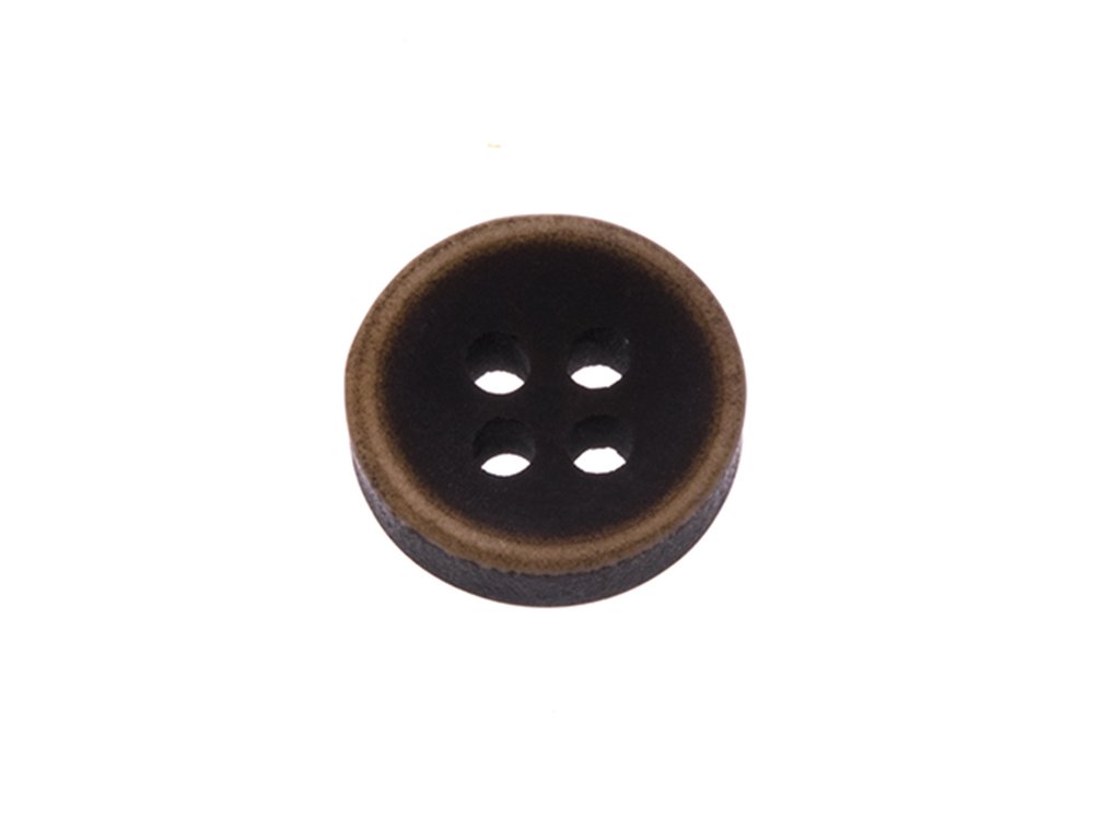 Plastikowy Guzik 11 mm brązowy z dekorem drewnianym.