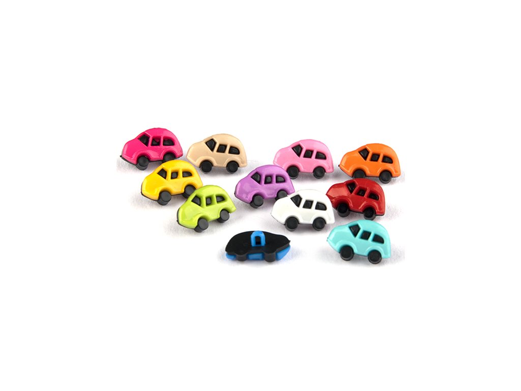 Plastikowy guzik w kształcie samochodziku, dostępny w kilku wariantach kolorystycznych.Parametry dodatkowe