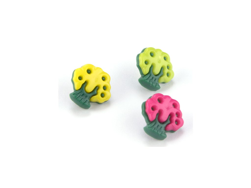 Guzik plastikowy w kształcie drzewa z oczkiem do przyszywania u dołu.Parametry dodatkowe
