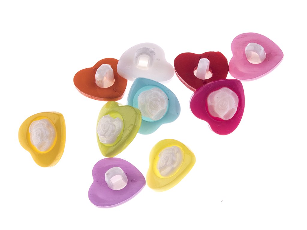 Plastikowy guzik w kształcie serca, z tyłu oczko do szycia.Parametry dodatkowe