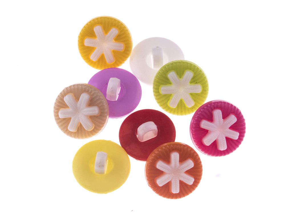 Guzik plastikowy, z tyłu pętelka do szycia.Parametry dodatkowe