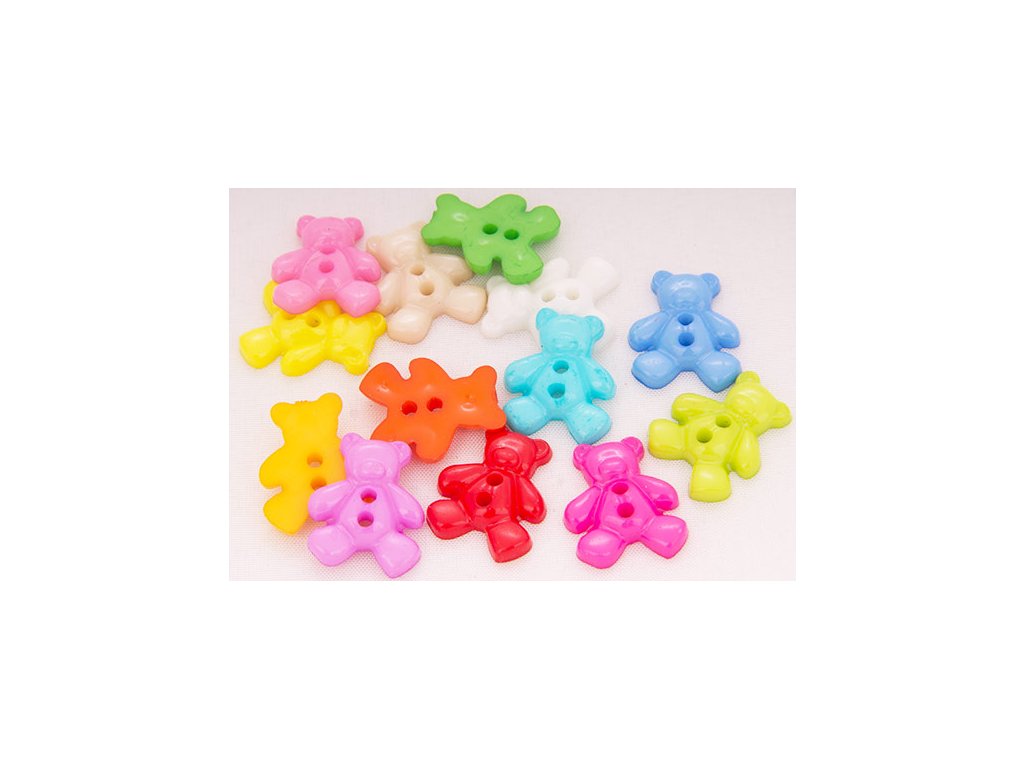 Dekoracyjny plastikowy guzik w kształcie misia.