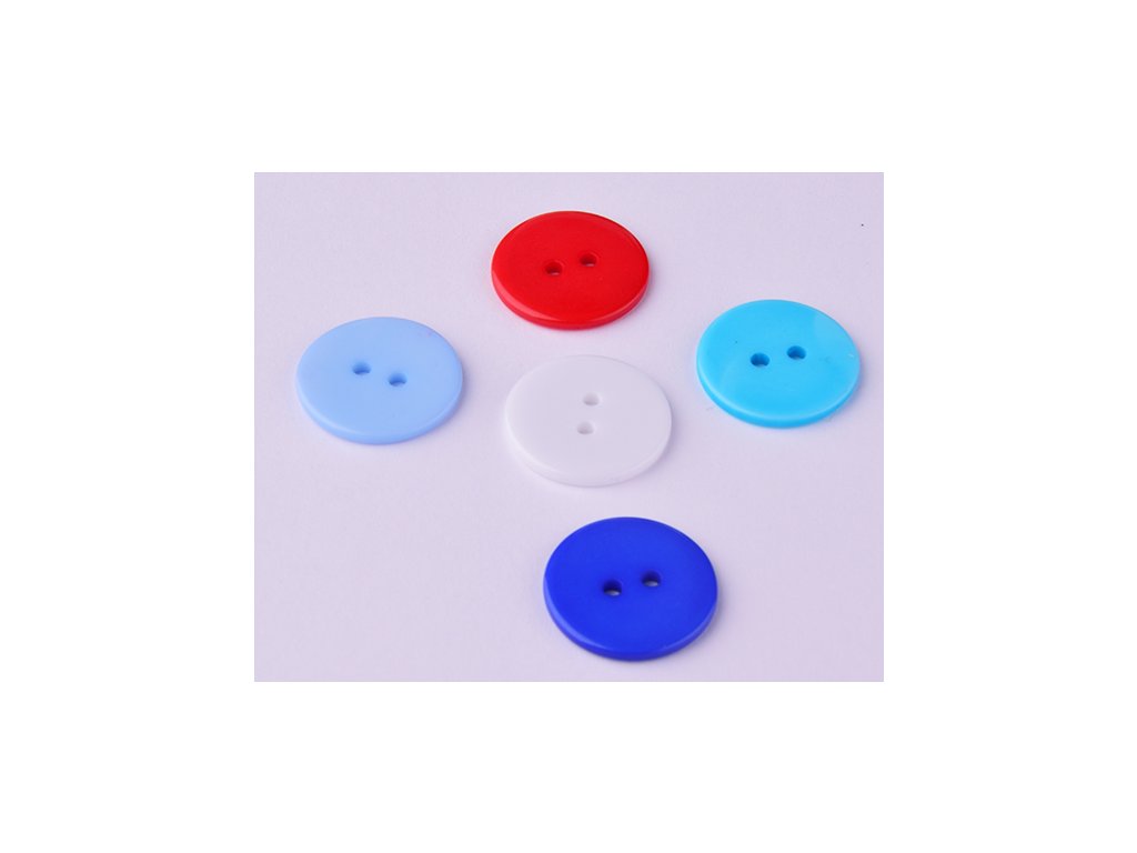 Płaski plastikowy guzik z dwoma dziurkami.Parametry dodatkowe