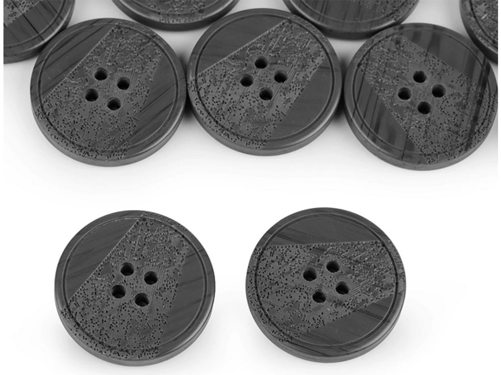 Guzik plastikowy z powierzchnią grawerowaną laserowo przeznaczony jest do przyszywania odzieży, ale także do scrapbookingu i innych zastosowań dekoracyjnych.Parametry dodatkowe