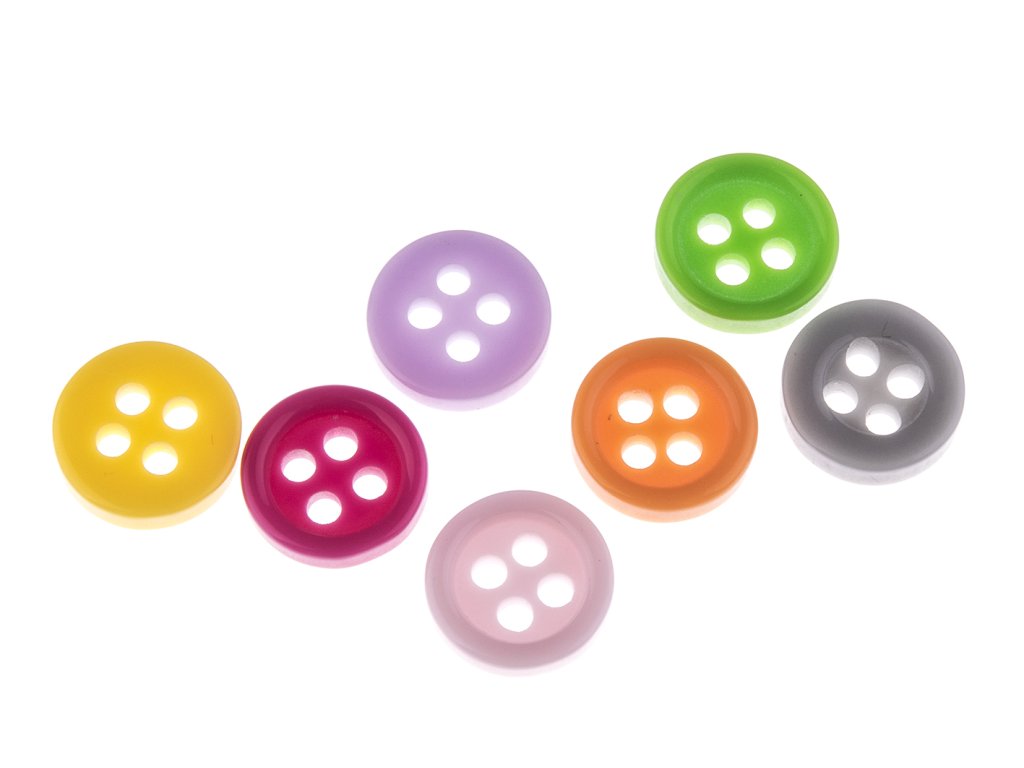 Plastikowy guzik koszulowy o rozmiarze 9 mm.Parametry dodatkowe