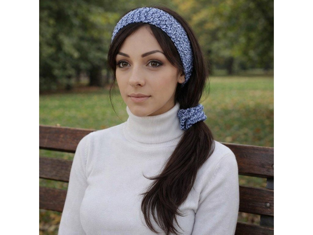 Modna opaska szydełkowa do zawiązania oraz ozdobna gumka z tego samego materiału, która będzie świetnym dodatkiem.