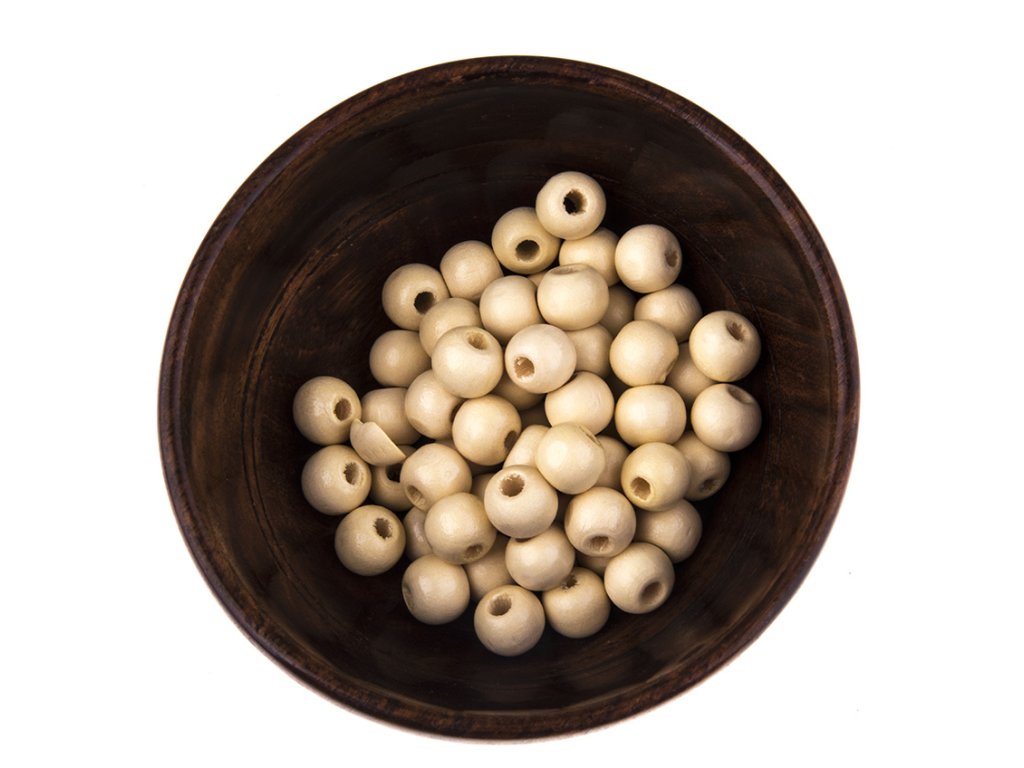 Lakierowany okrągły koralik z jasnego drewna. Otwór na gwint 3 mm. Cena dotyczy koralików 20 gr, czyli około 58-62 sztuk.Parametry dodatkowe