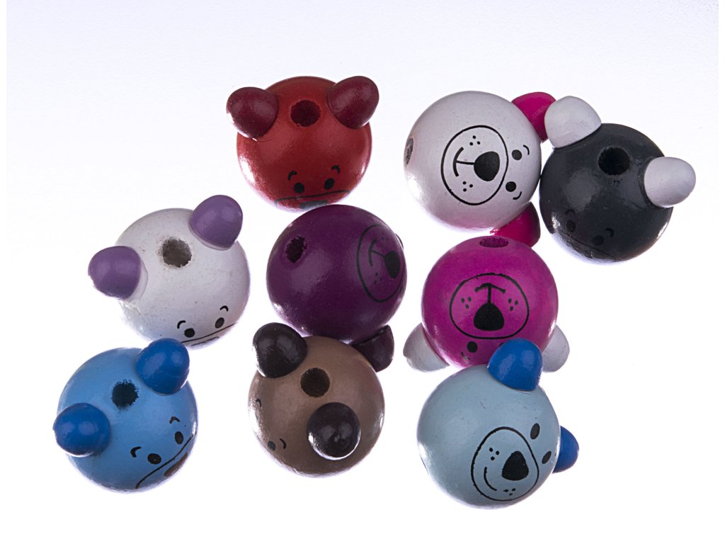 Drewniany koralik z pomalowaną twarzą. Nadaje się do tworzenia zwierzątek i innych ozdób. Gwint: 4mmParametry dodatkowe