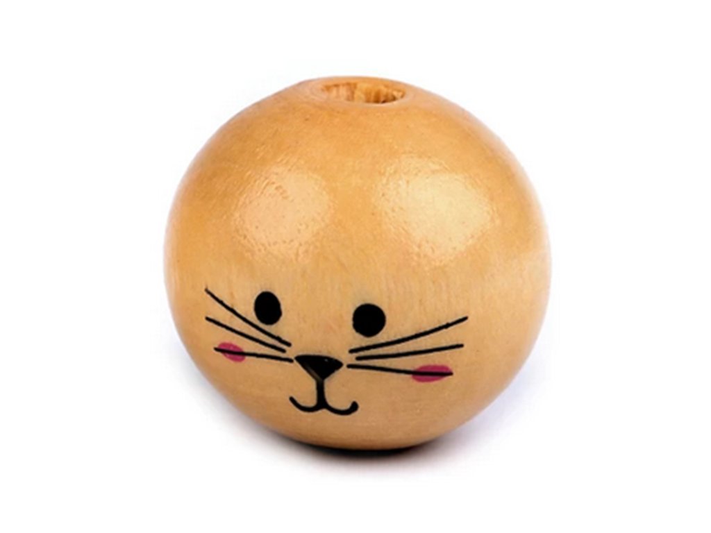 Drewniany koralik z pomalowaną twarzą. Nadaje się do tworzenia zwierzątek i innych ozdób. Gwint: 4mmParametry dodatkowe