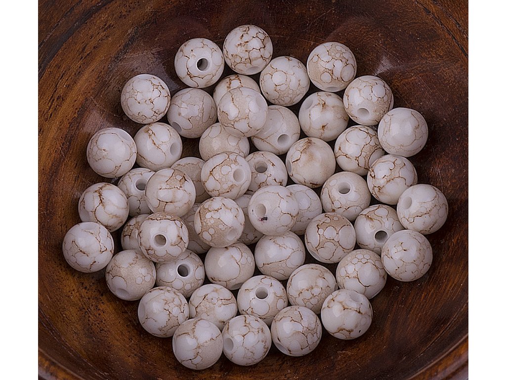 Koraliki plastikowe o wyglądzie marmuru, odpowiednie do wyrobu biżuterii i dekoracji. Średnica: 8mm Opakowanie zawiera 50 szt.Parametry dodatkowe