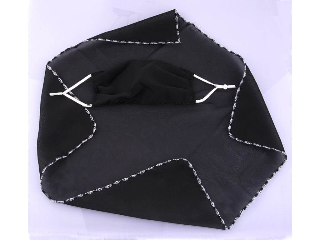 Możesz mieć jednocześnie maseczku i zawoalowaną szyję. Szal o wymiarach 42x42cm połączony z maseczka wymiarach 20x12cm. Nie jest to pełnoprawny wyrób medyczny, ale może zmniejszyć ryzyko przenoszenia chorób przenoszonych przez wydychane cząsteczki.Parametry dodatkowe