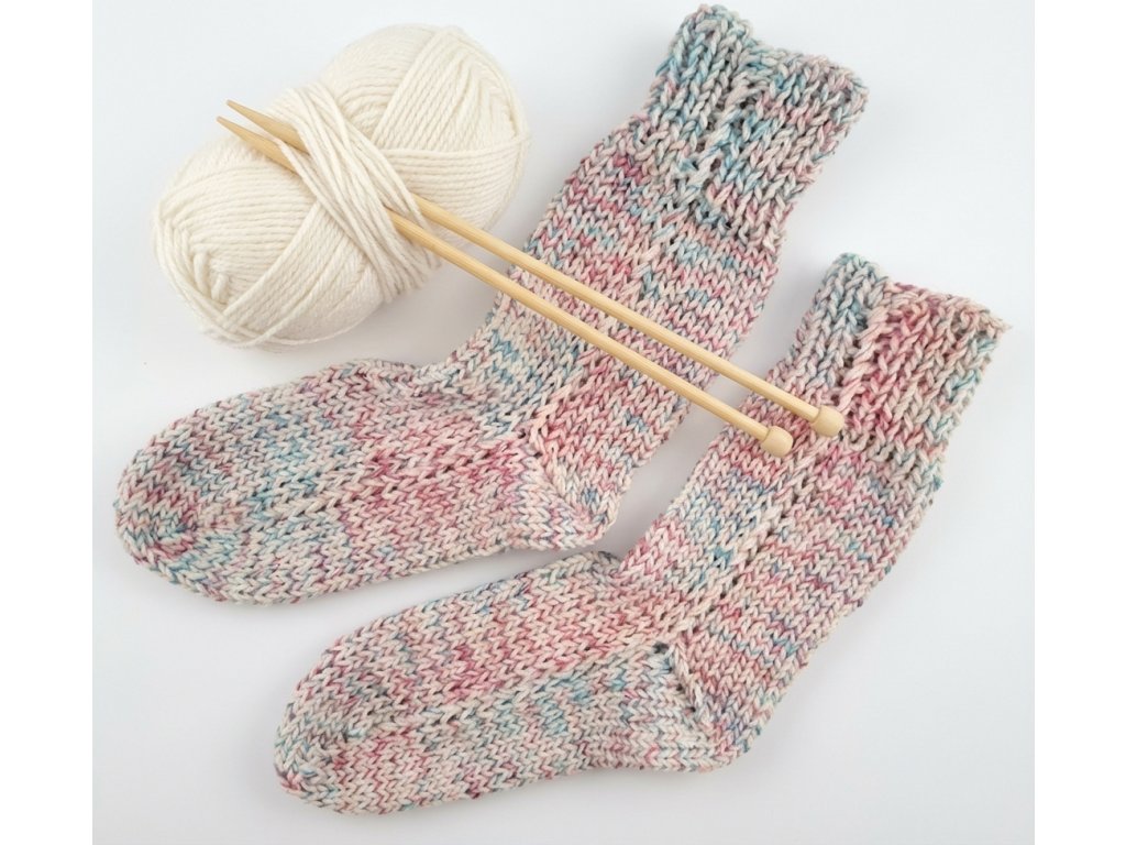 Bílé ponožky s jemně duhovým přípletem pro chladnější dny.