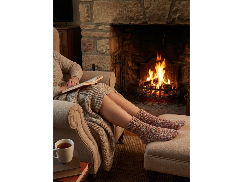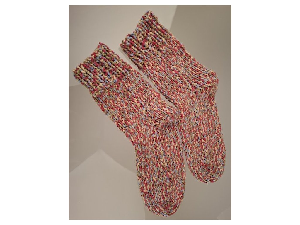 Ručně pletené ponožky s velkým podíle vlny, která zajišťuje hřejivost a odolnost.