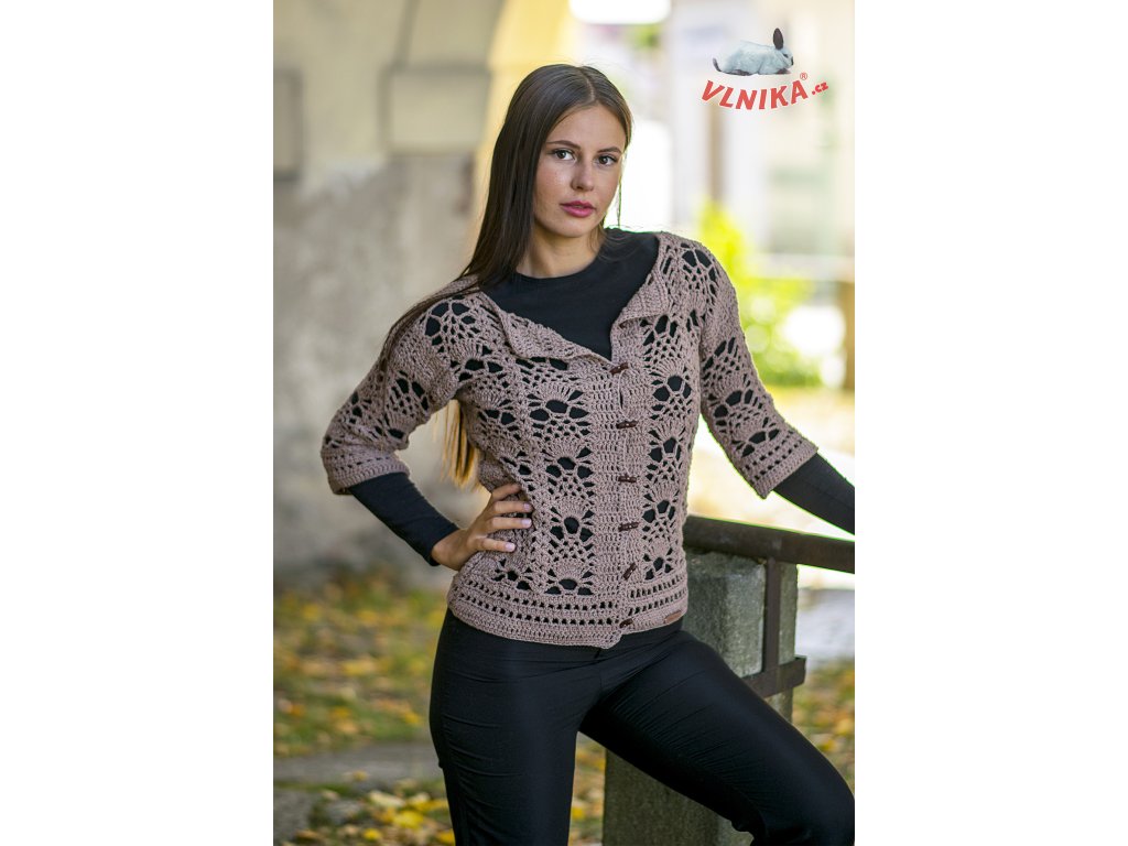Jemná příze v příjemném složení bavlny a lnu, ze které upletete či uháčkujete mnoho zajímavých výrobků: halenky, tuniky, lehké svetříky, čepičky aj.Svetr Aura