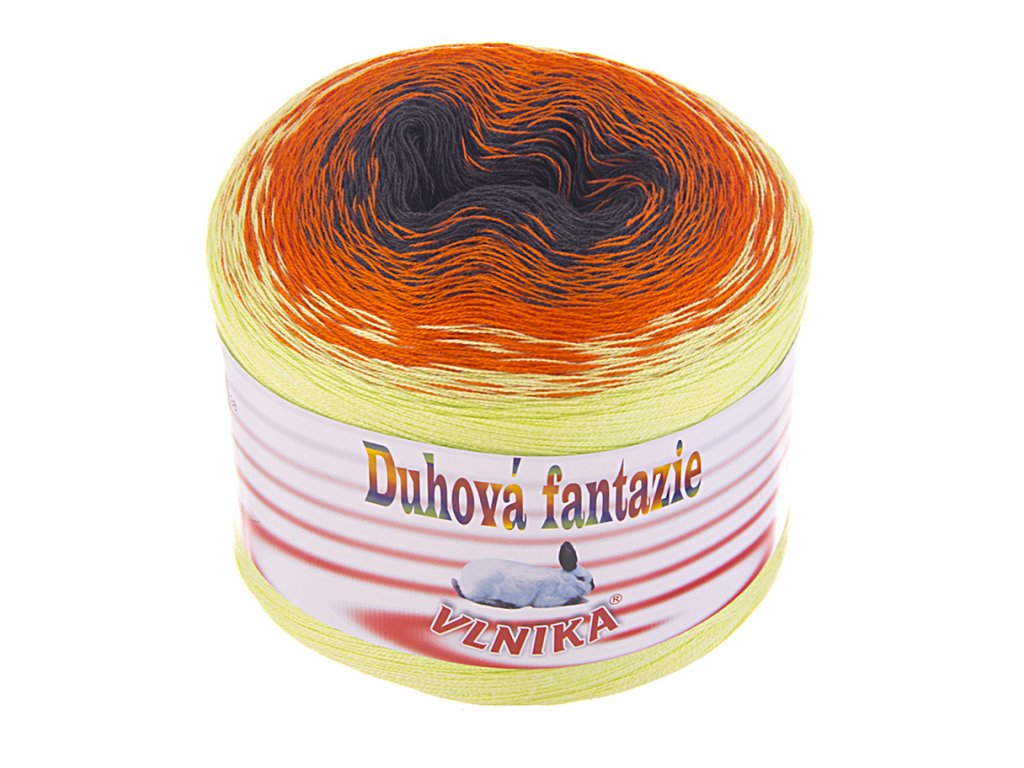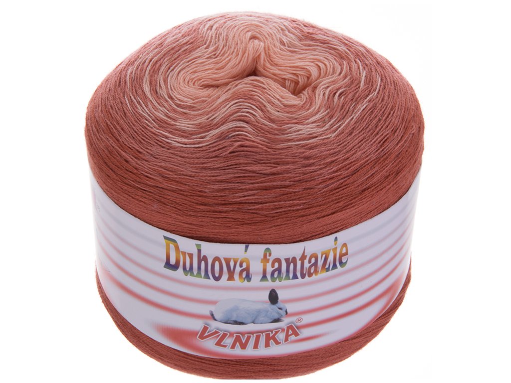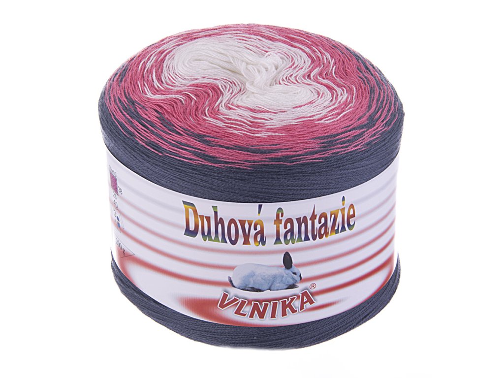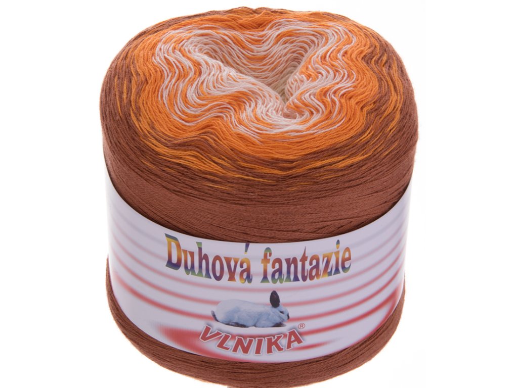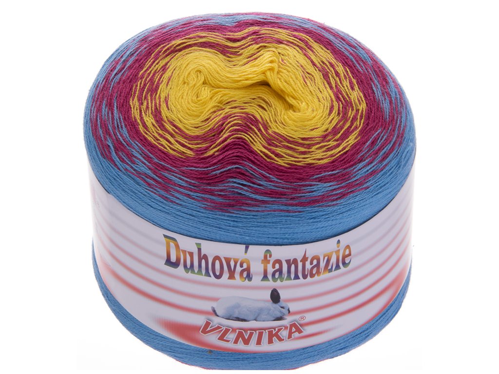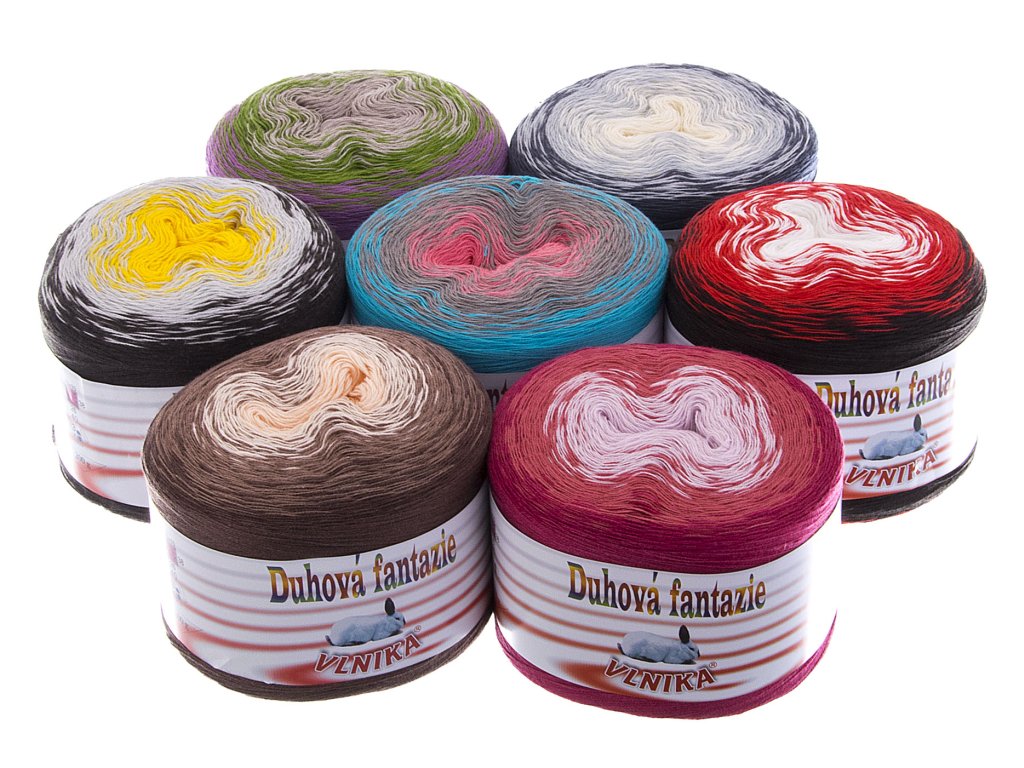 Pestrá paleta barev, jemně sladěných v postupném tónovaní, to je příze Duhová fantazie. Vlákno je složeno ze 4 nitek v příjemném složení bavlny a akrylu. Uháčkujete z ní velmi originální modely, ať už módní šátky, šály, čepice nebo svetříky. Z 1 klubka zhotovíte veliký šátek, ze 2 klubek svetřík. Neopominutelná je i nízká cena!Doplňkové parametry