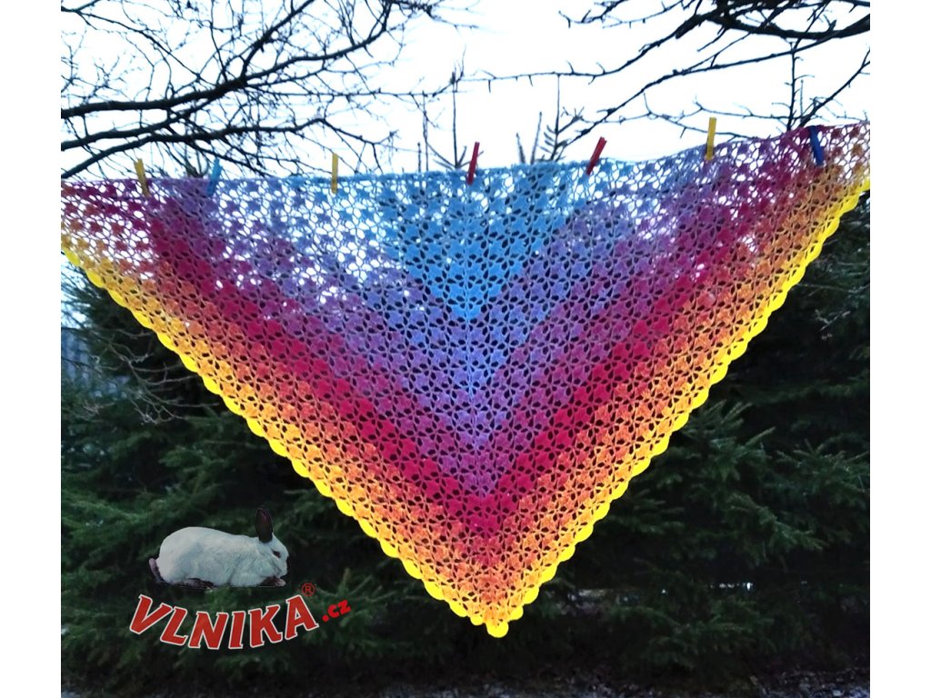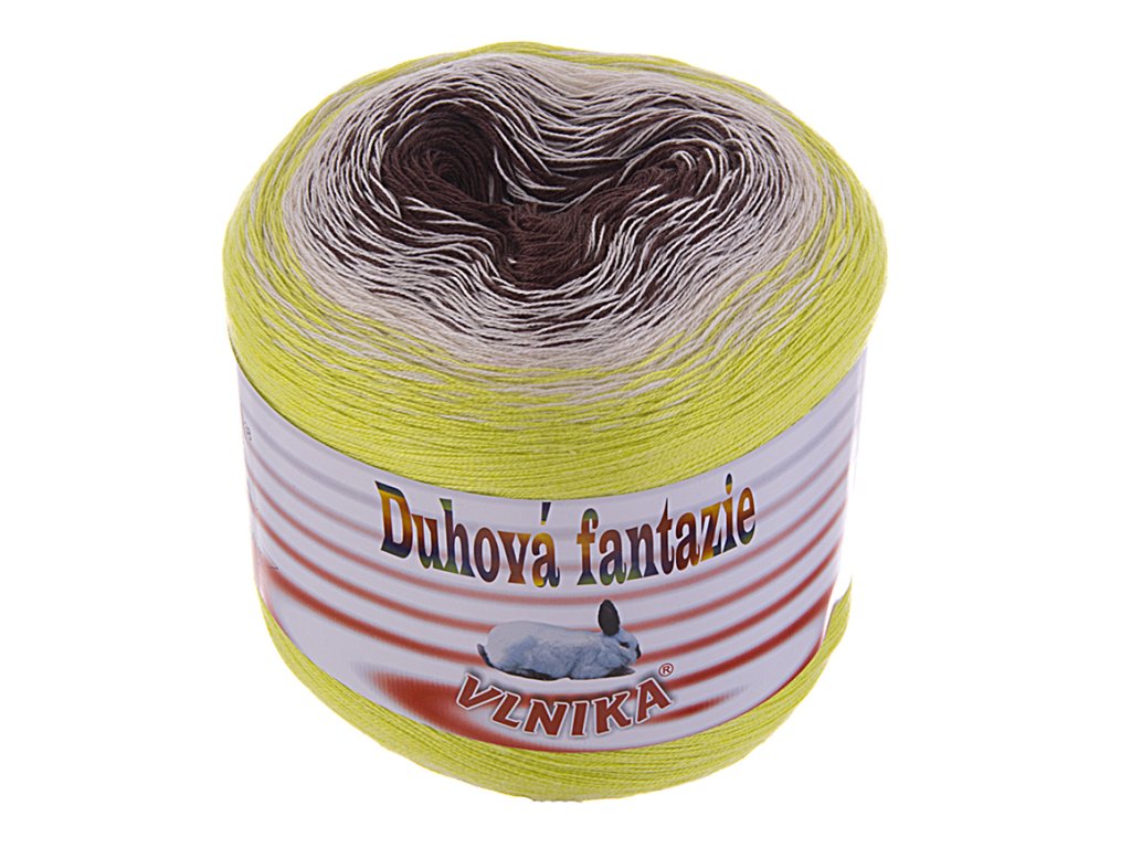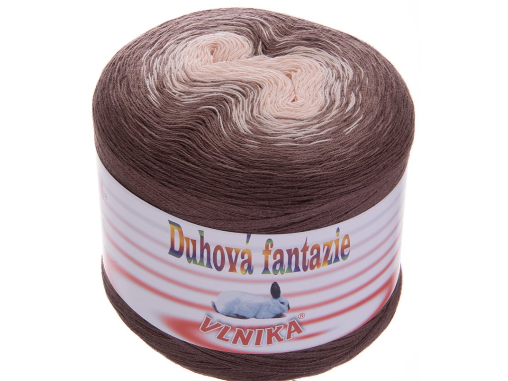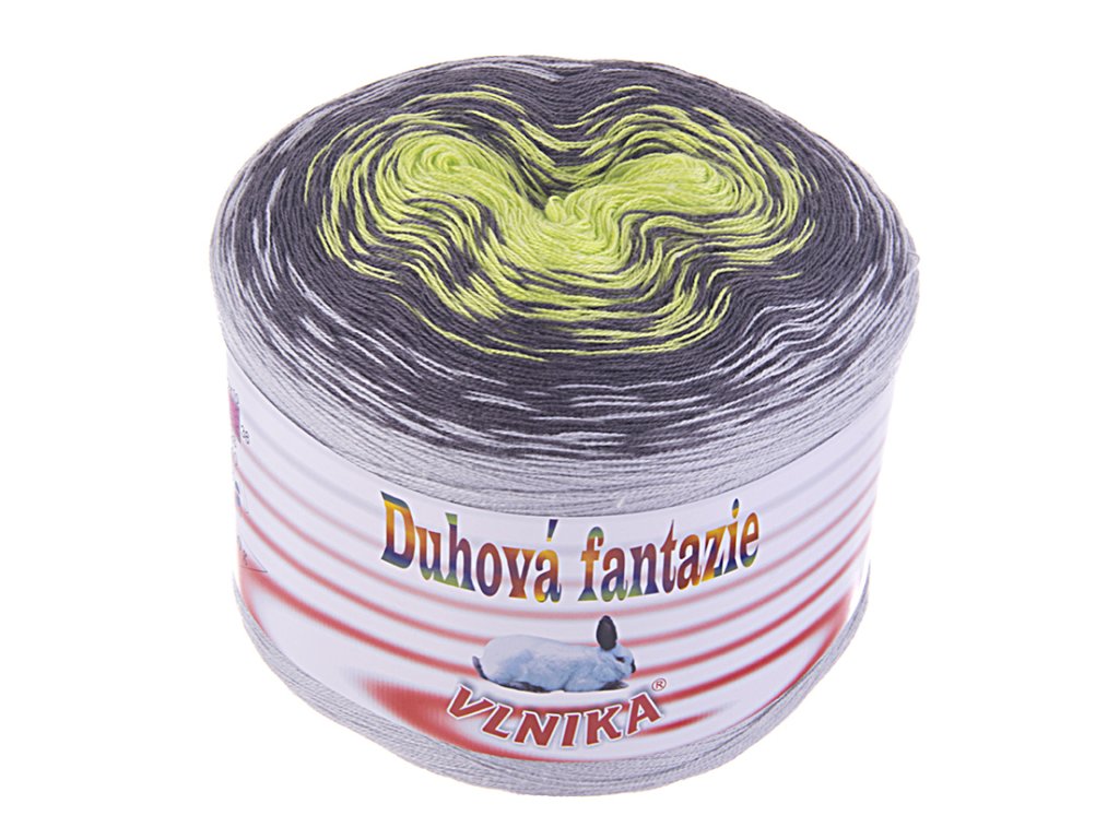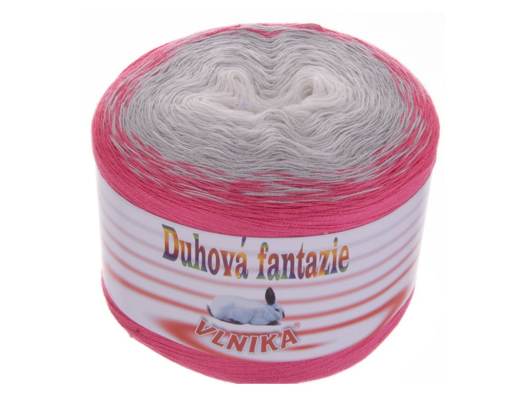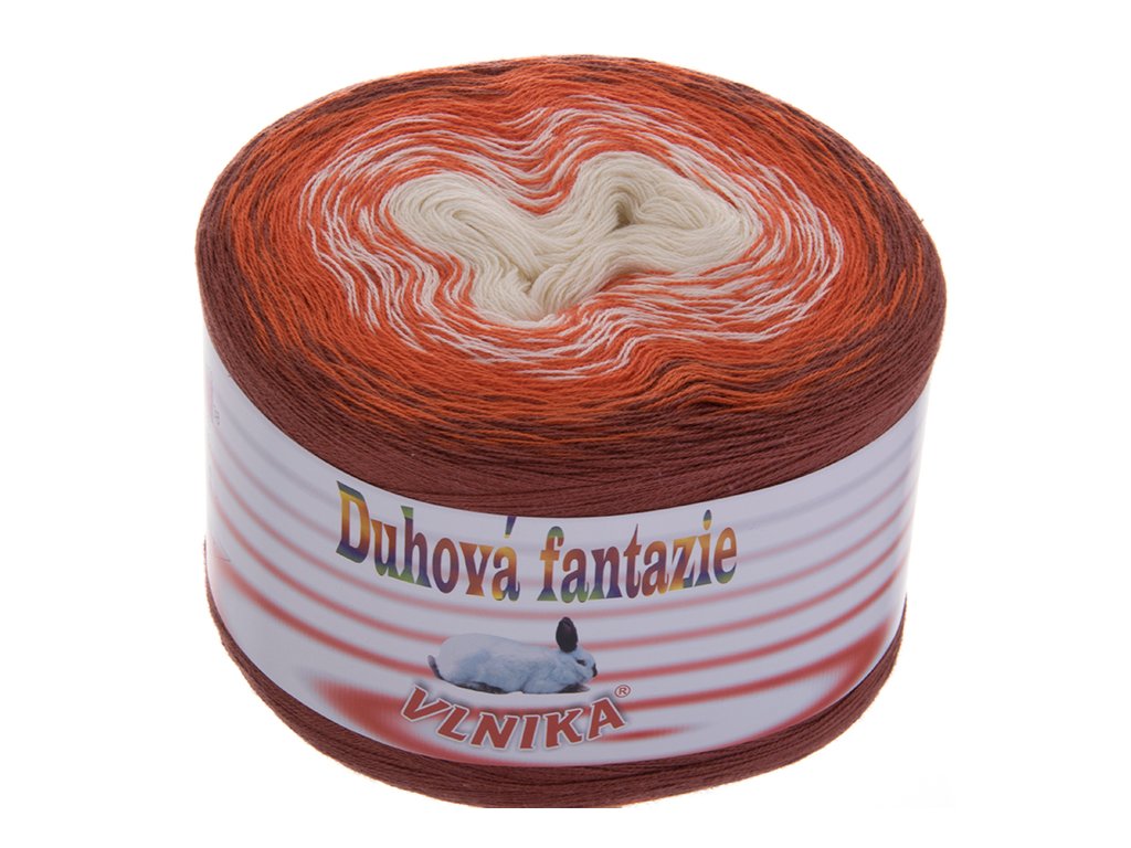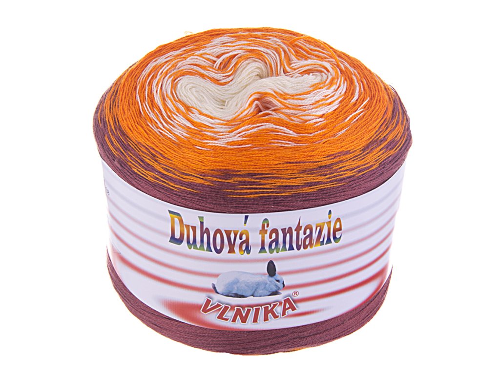 Pestrá paleta barev, jemně sladěných v postupném tónovaní, to je příze Duhová fantazie. Vlákno je složeno ze 4 nitek v příjemném složení bavlny a akrylu. Uháčkujete z ní velmi originální modely, ať už módní šátky, šály, čepice nebo svetříky. Z 1 klubka zhotovíte veliký šátek, ze 2 klubek svetřík. Neopominutelná je i nízká cena!Doplňkové parametry