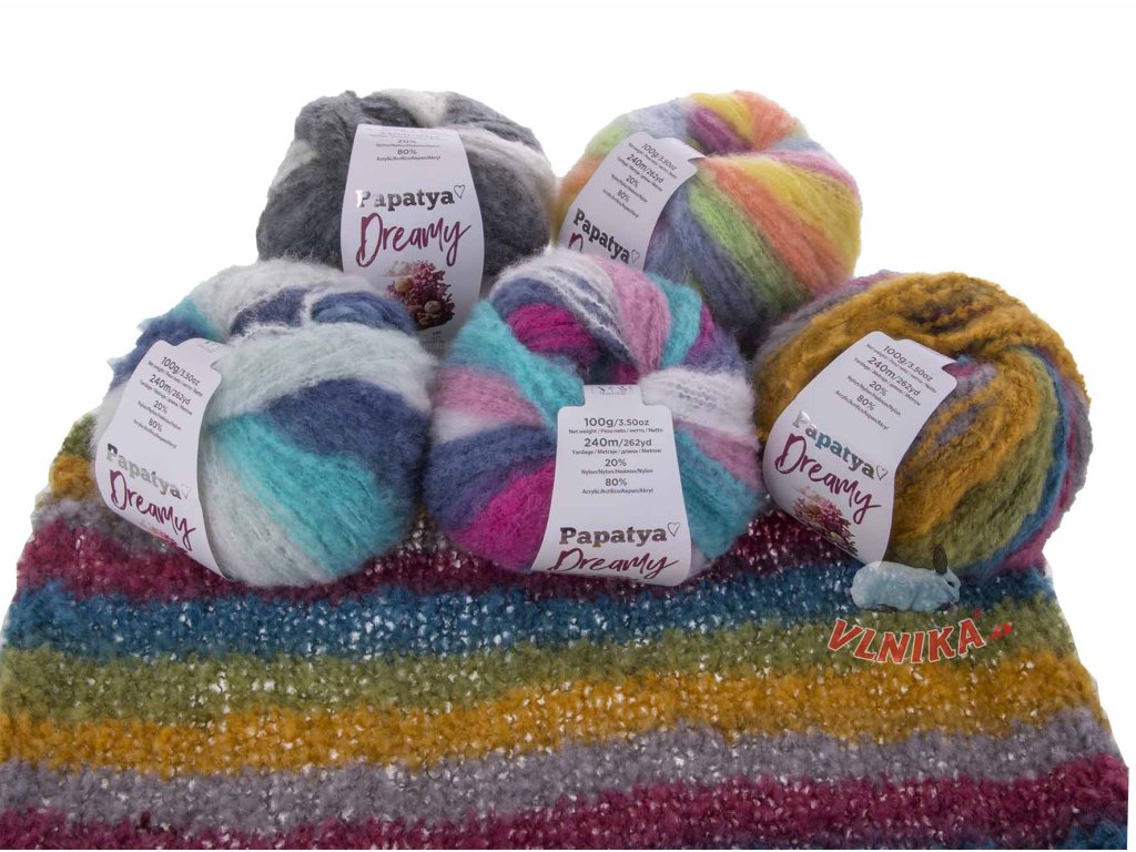 Jemná žinylková vícebarevná příze. V úpletu vytváří barevné pruhy. Velmi příjemná na dotyk, vhodná pro lehké svetříky.Doplňkové parametry