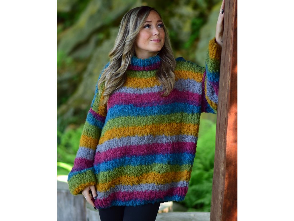 Jemná žinylková vícebarevná příze. V úpletu vytváří barevné pruhy. Velmi příjemná na dotyk, vhodná pro lehké svetříky.