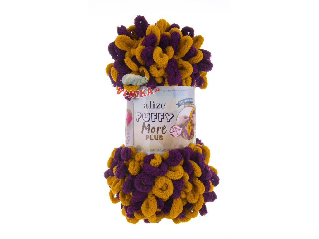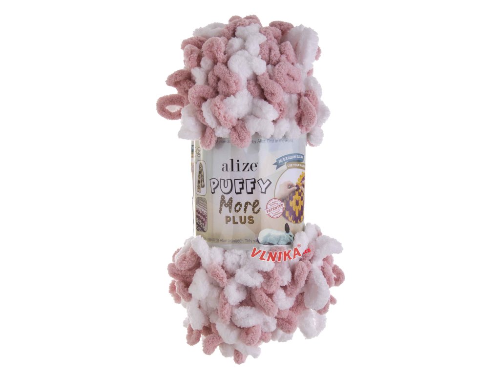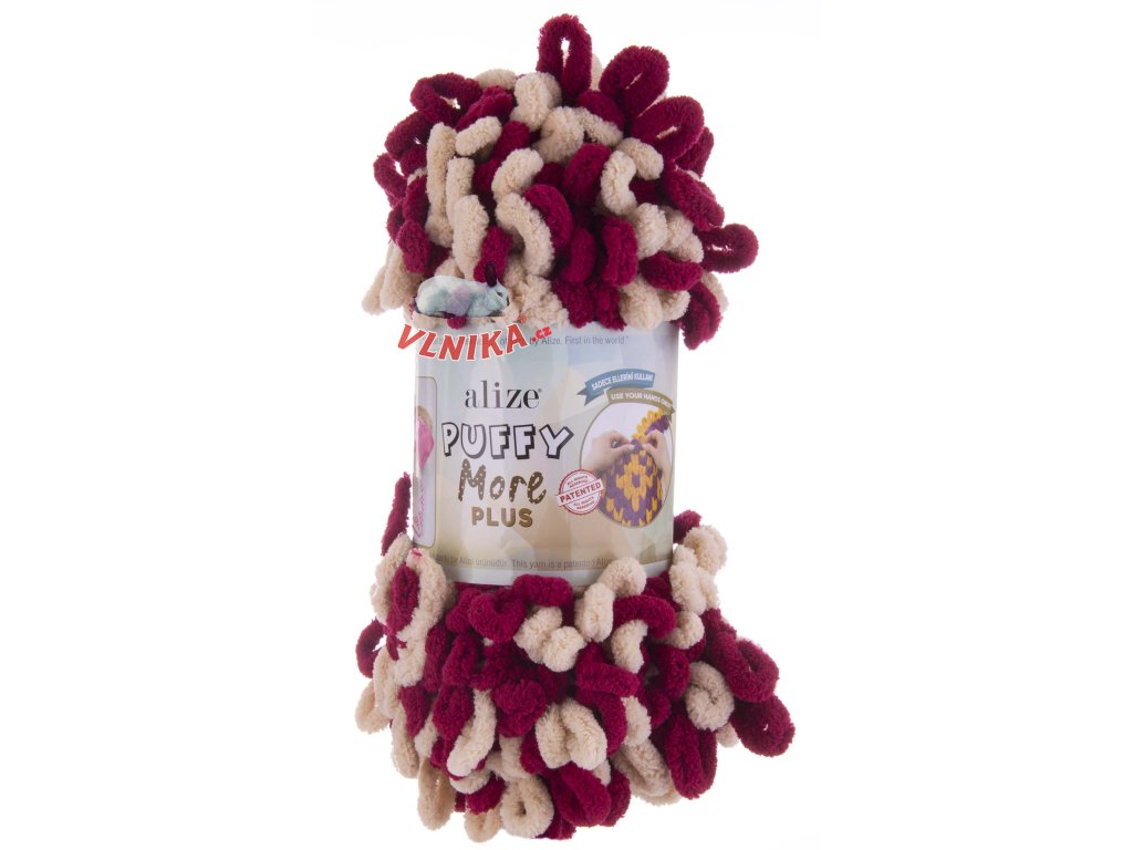 Hebká, žinylková příze s dvoubarevnými smyčkami pro pletení na rukách, které vytvářejí originální oboustranný efekt. Tato příze umožňuje aplikovat na vaše výrobky různé pixelové vzory (krajina, obrázek vašich blízkých,..). Na pletení nejsou potřeba jehlice - pouze se protahují jednotlivá očka ručně. Puffy More Plus je silnější verze příze Alize Puffy More.Doplňkové parametry