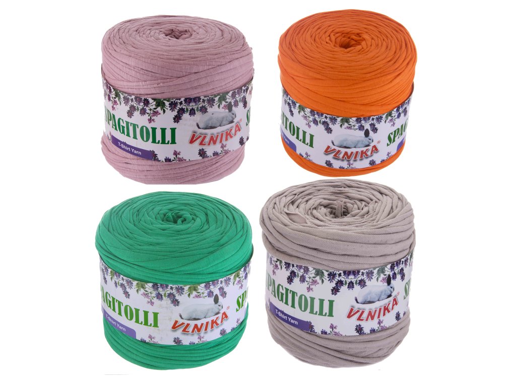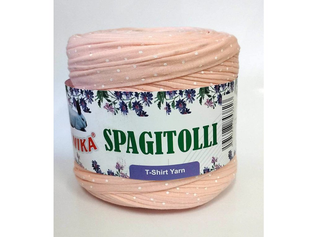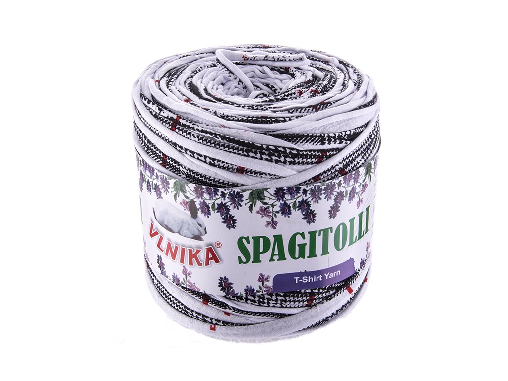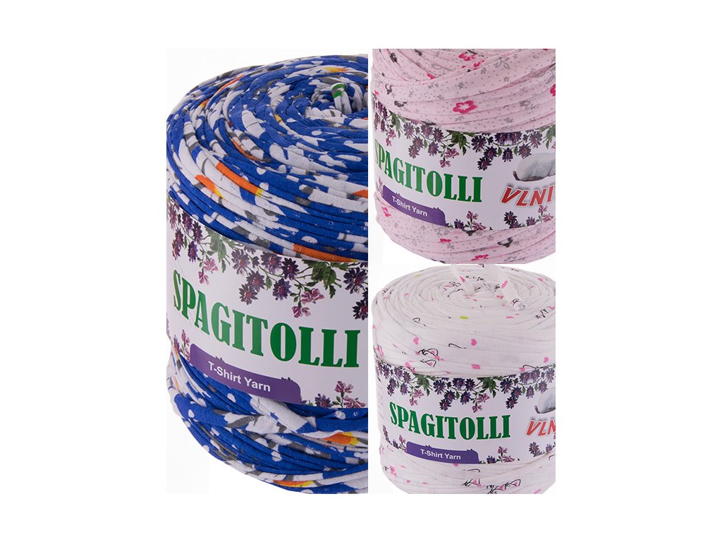Hmotnost klubíčka může být 650 - 700 g. Návin na klubíčku je 90 - 120 m. Spagitolli jsou nařezané proužky z úpletových látek. Má široké využití. Vhodné na pletení kabelek, koberečků, různých bytových doplňků, ale i oblečení. Některé odstíny se mohou lehce lišit.Doplňkové parametry