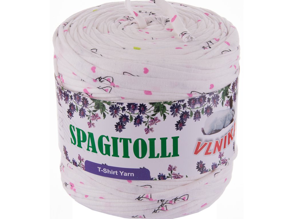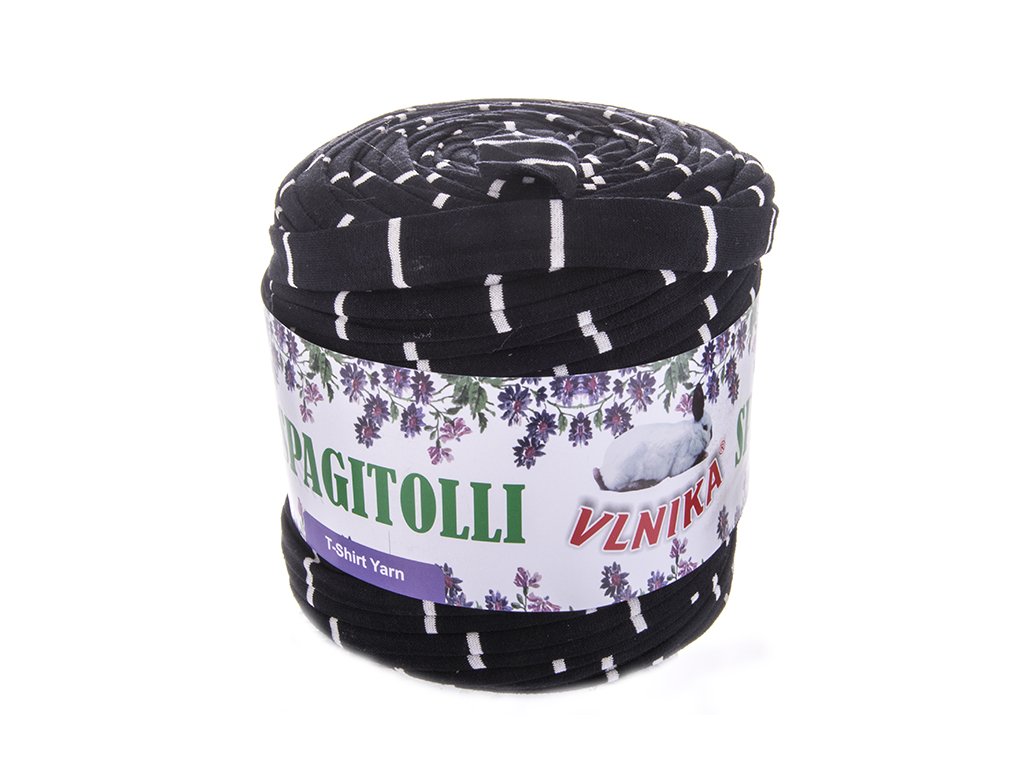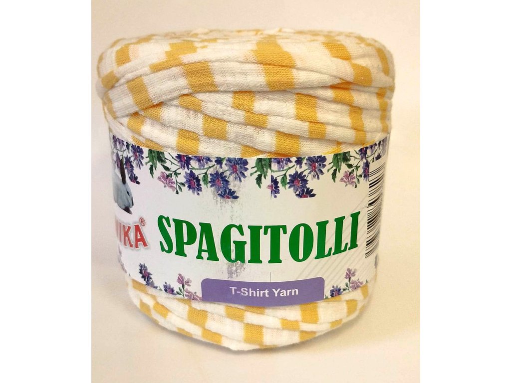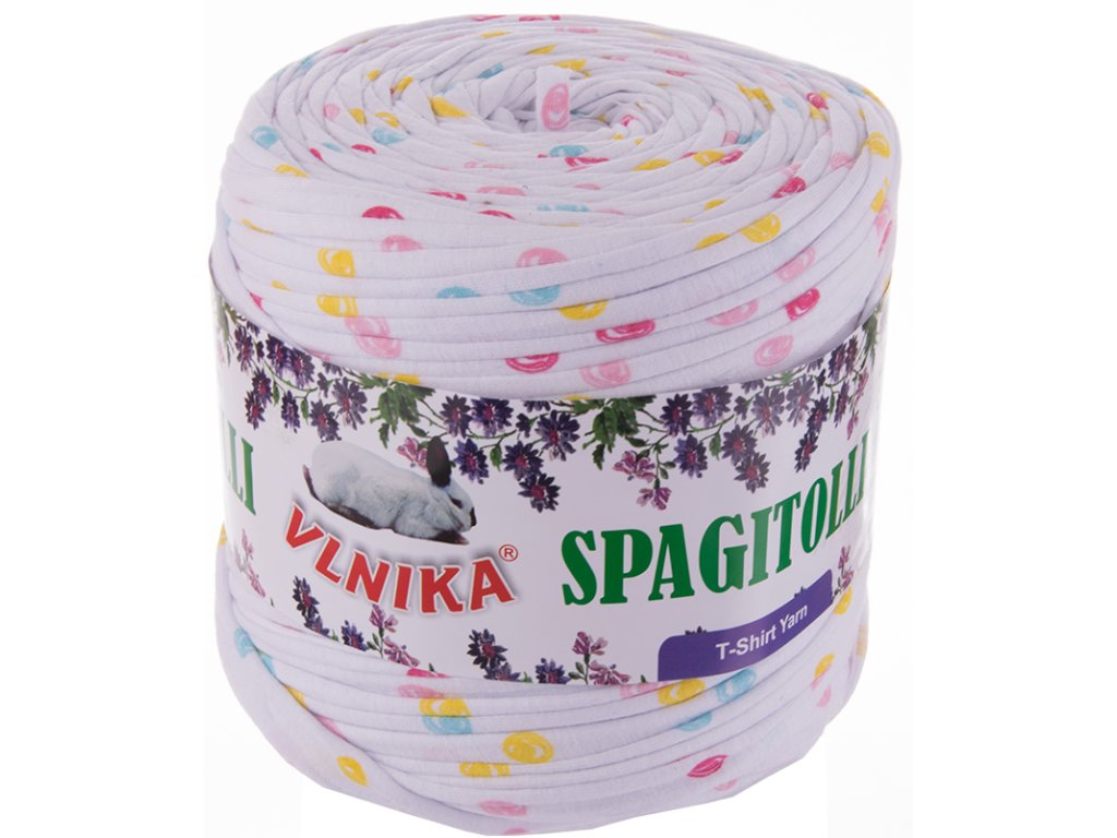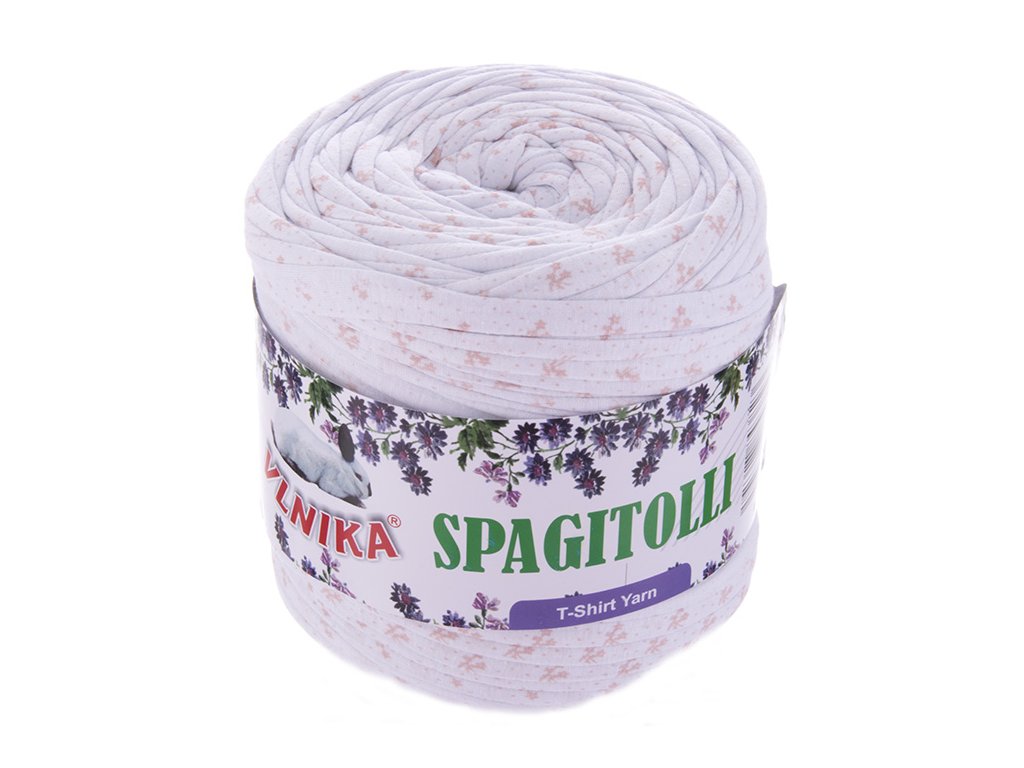 Hmotnost klubíčka může být 650 - 700 g. Návin na klubíčku je 90 - 120 m. Spagitolli jsou nařezané proužky z úpletových látek. Má široké využití. Vhodné na pletení kabelek, koberečků, různých bytových doplňků, ale i oblečení. Některé odstíny se mohou lehce lišit.Doplňkové parametry