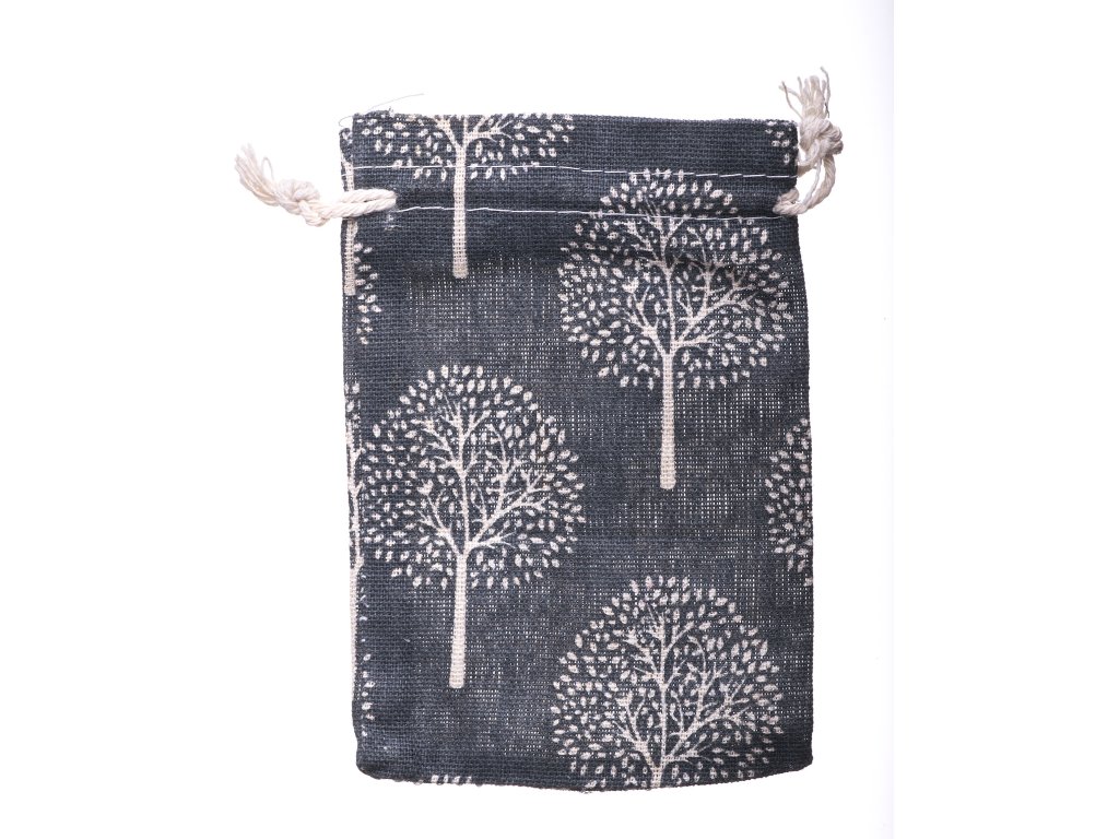 Pytlík lněný šedý se stromy 10x14cm